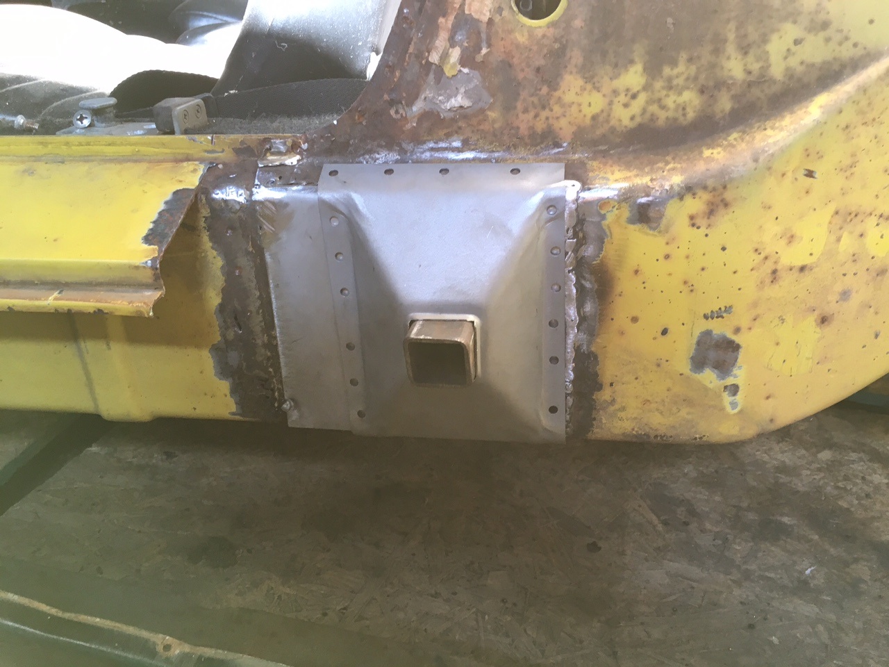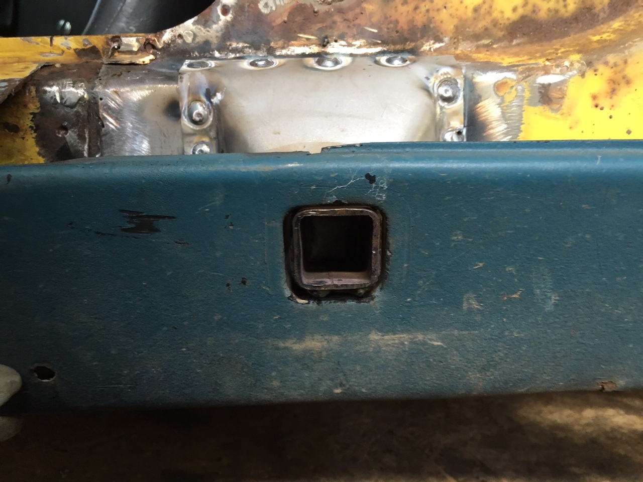 I started with this. I then welded up a circle plate to cover the hole. The jack tube welds to this plate. ![]() I then added a second layer and I cut a square hole in the middle for the jack tube. ![]() I used a rocker panel to ensure everything lined up and then welded on the outer cover. |