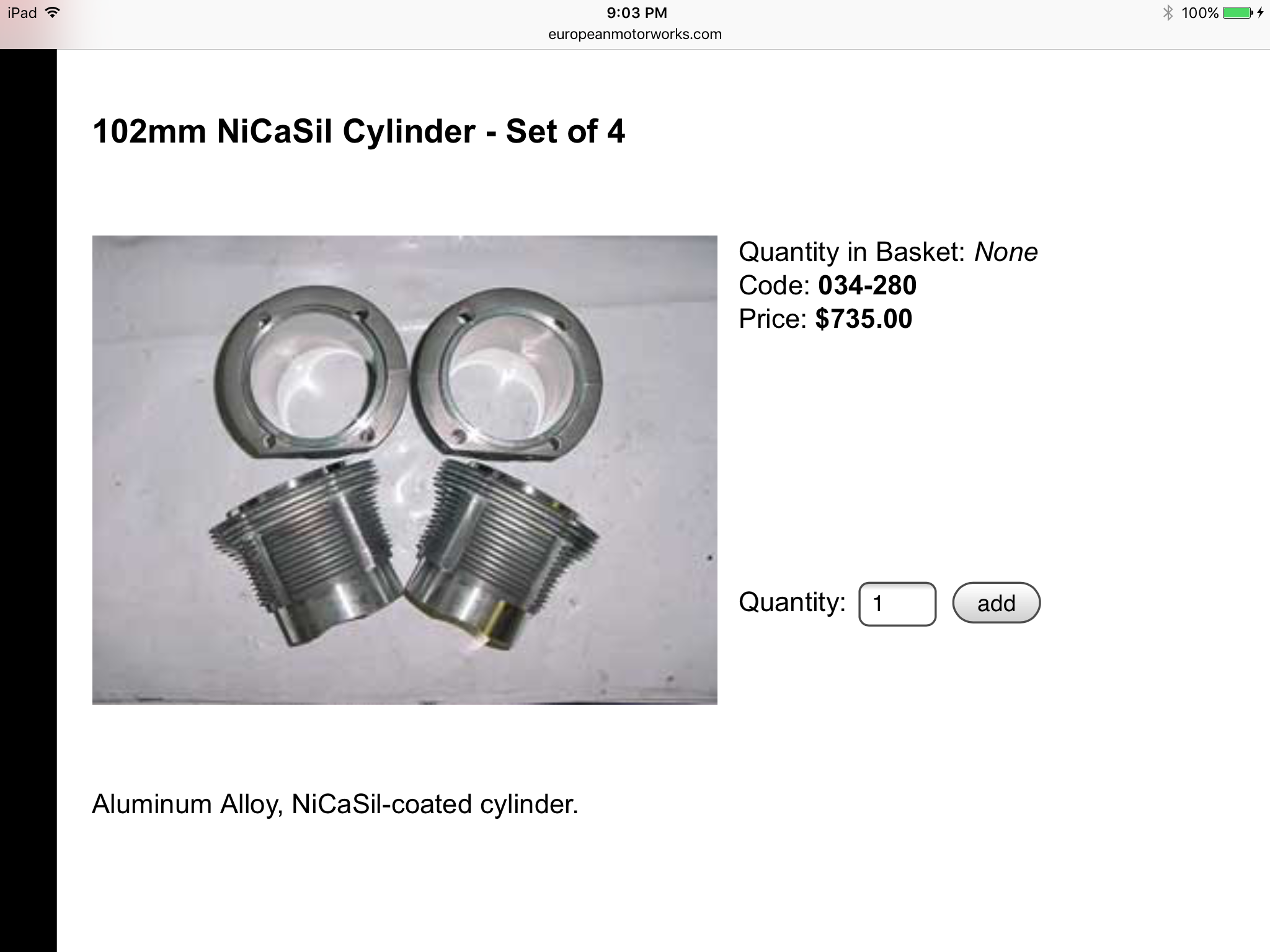 The 1972 914 I bought is supposed to have 103mm Nickies (by LN-Engineering) with JE-forged pistons.