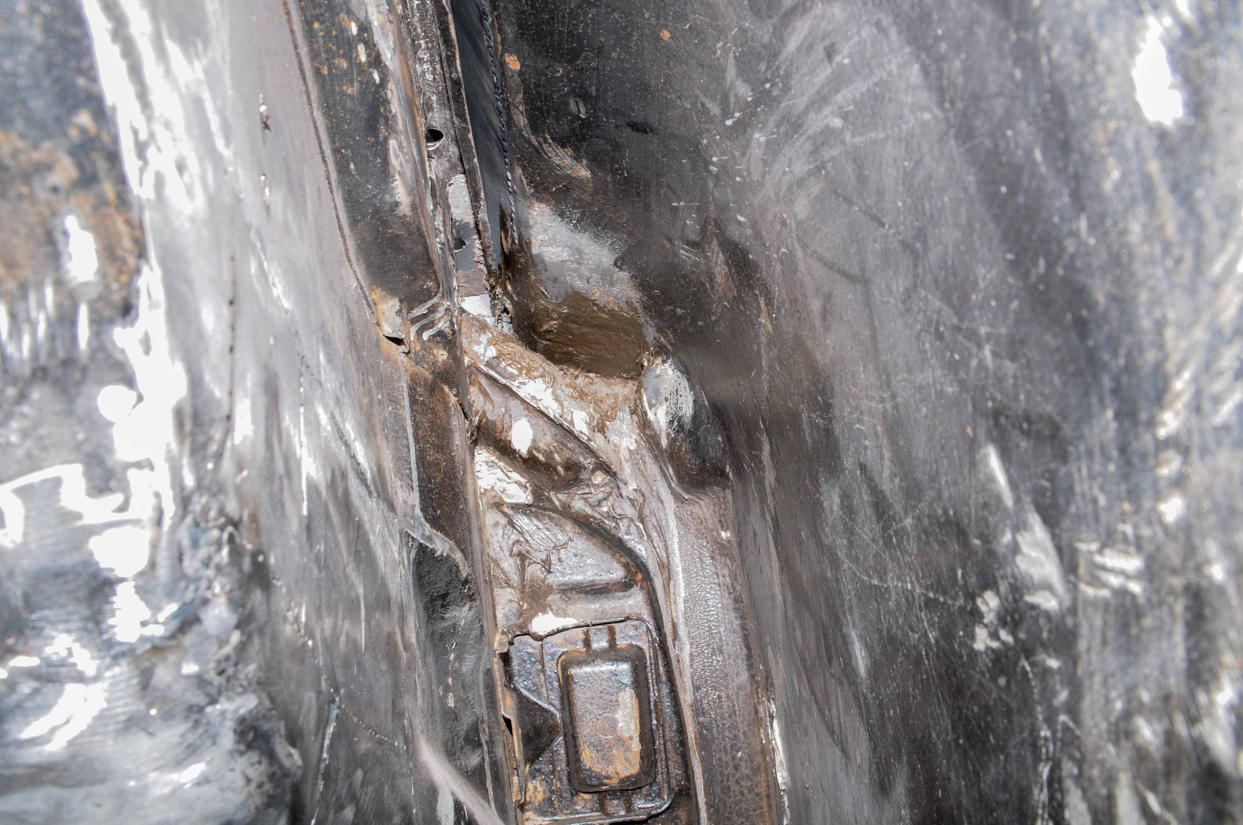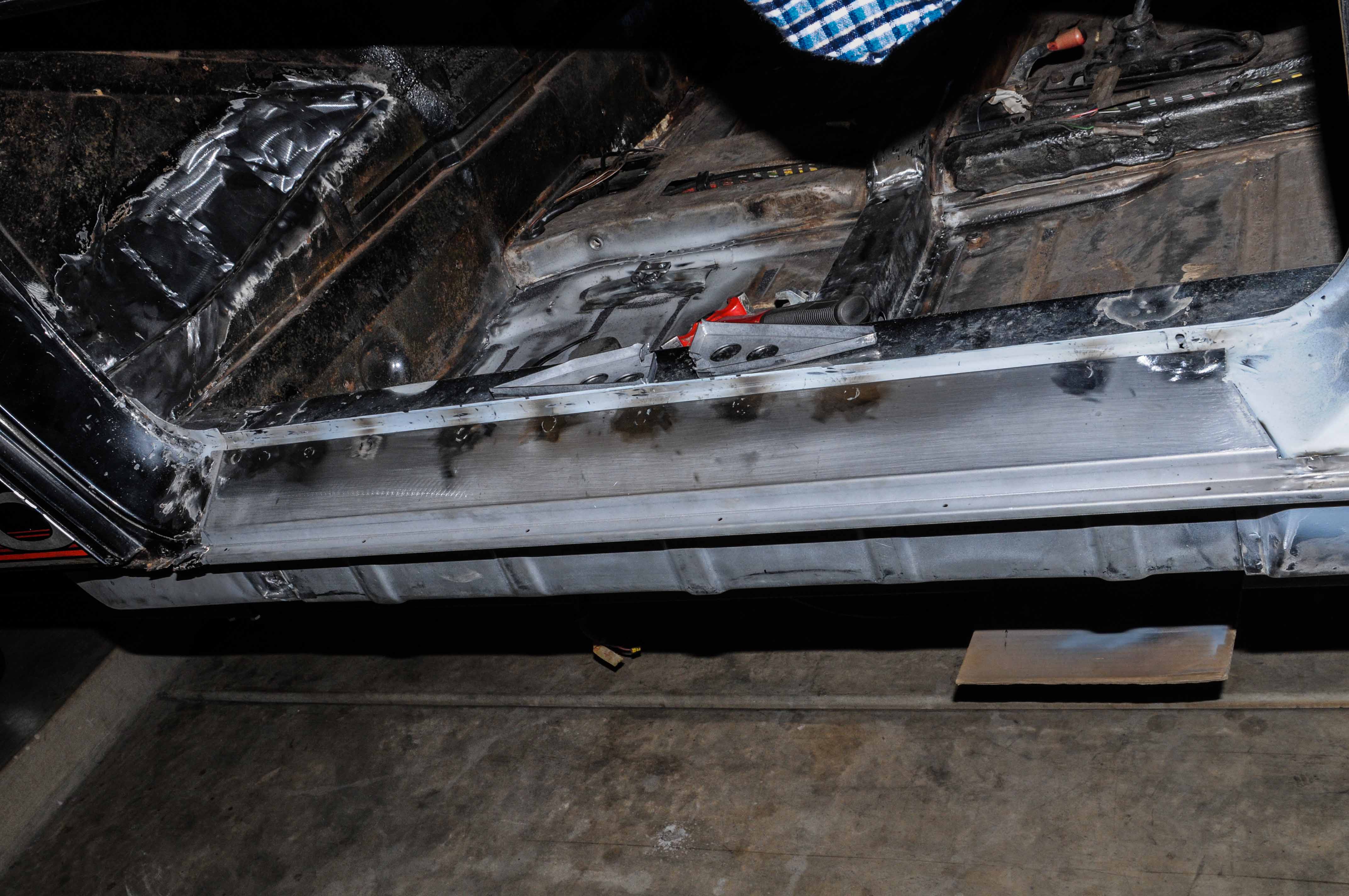 Shop soundtrack: my Willie Nelson Pandora station: Another shorter day in the shop... My plastic lawn chair kinda broke so I spent some time trying to fix it with fiberglass filler stuff, didn't really work. But it did give me the idea to use that to reinforce and back the little patches at the top of the door jamb now instead of later. It kinda sucked getting up in there, but the fact that it squeezed out a few pinholes was a good sign. I then moved on to the door sill in an obvious attempt to avoid that suspension console. The door sill fit really well and went on easily, but as I went to install the little triangles and grind the welds I noticed that I screwed up and the thing wasn't straight. It was kinda weird drilling out my own welds... but I managed to get them broken with the help of a little hacksaw underneath. The sill then went on straight and easy without damage and the triangles fit perfectly. NOTE: IF you're asking my opinion, or if I were to weld another sill on, I would either figure a way to do it with the triangles pre-welded, or at least use them as a guide (as I did the 2nd time) to keep the gap straight and what not. After the error I was paranoid, so I checked and double checked this thing at least 50 times. Overall it was a good day in the garage, and great that I got away with an error without permanent damage/costing $$$. Attached thumbnail(s) |