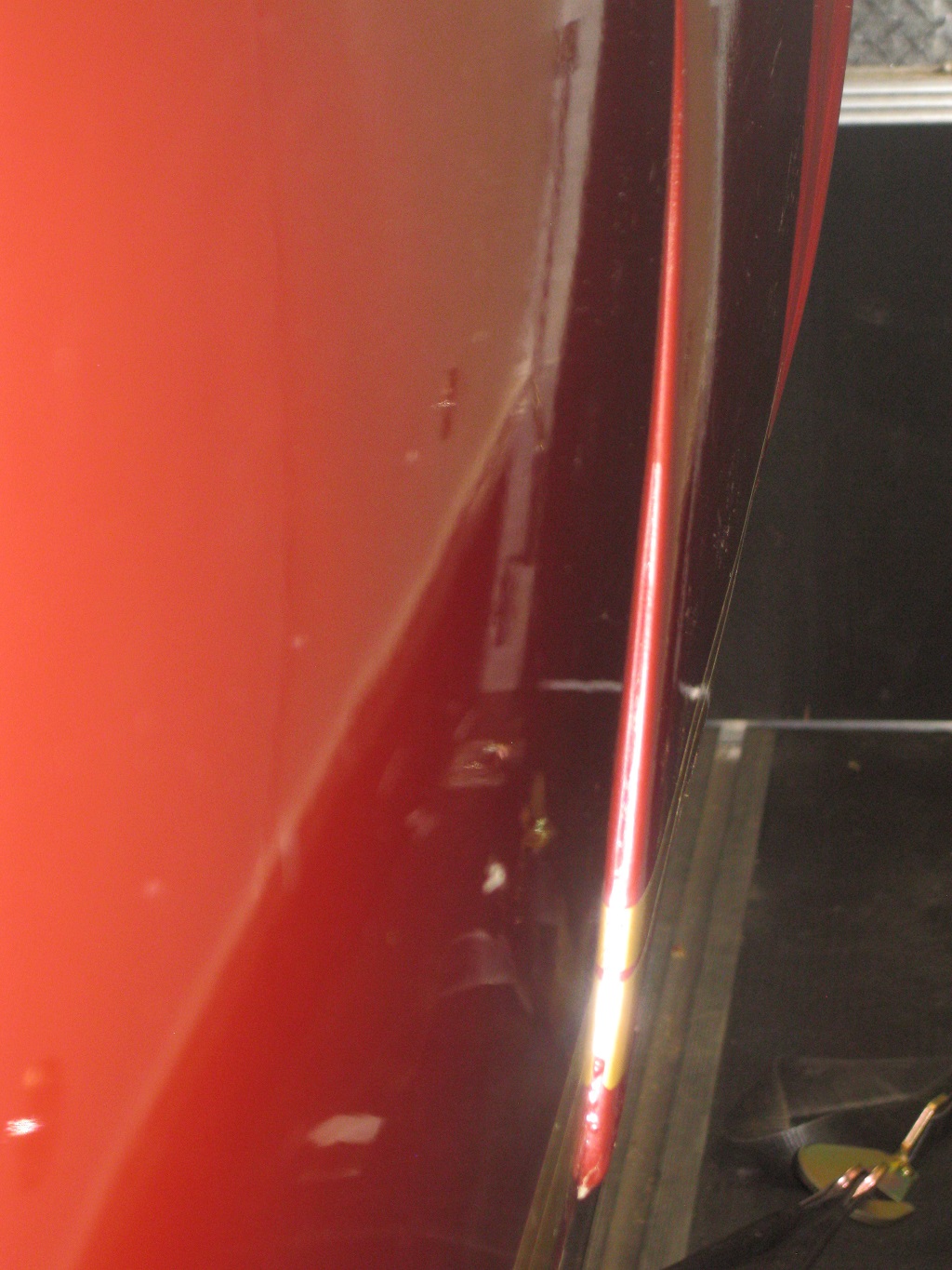 I'm thinking if the car won't cost much to straighten maybe I could still have you do some of the work that I'm not competent to do (well, that would be all of it, but you know what I mean...). I'm trying to figure what it's going to take to fix it before I spend any more money on it (e.g., before ordering panels from RD). Here are the requested photos and then some, hot off the press. Driver's side wheel well. I had a friend look at it and he thought he saw a small kink that I've circled in red (there is a vertical crack in the undercoating that's hard to see in the pic), but it really doesn't look like a kink to me (but what do I know). ![]() ![]() ![]() Passenger side wheel well: ![]() ![]() ![]() Another shot of the underside. You can really see in this one the difference relative to the trunk floor and if that bracket were present on the passenger side how far off the hole would be (when looking at it imagine that the trunk floor and trans crossbrace are level). ![]() Here are some pics of the other trouble spots in terms of fit. The trunk lid is bent so in the two pics below I'm trying to hold it down with one hand and take the picture. The first pic is looking across from the passenger side at the line of the trunk on the driver's side fender. The fender doesn't quite match up. Looks like it bowed up when it was pushed in from the collision. ![]() This is looking from the driver's side at the passenger fender-trunk seam. Not as bad as the driver's side: ![]() Here's the bowing I was talking about at the driver's rear fender where it meets the door: Same on the passenger side: But the doors fit better at the front, suggesting to me that it can't be corrected by adjusting the door (but I've never tried adjusting the doors). Here's the driver's side door to front fender (I hadn't noticed before that it is a bit out): And here's the passenger door to front fender. It also appears to be a bit out but in real life it looks pretty good. As an aside, the front door gaps are perfect and I've used my support bars to bring the targa bar to windshield opening to spec (25 and 1/8"; it was 3/16 wide) which made the rear door gaps perfect as well. |
