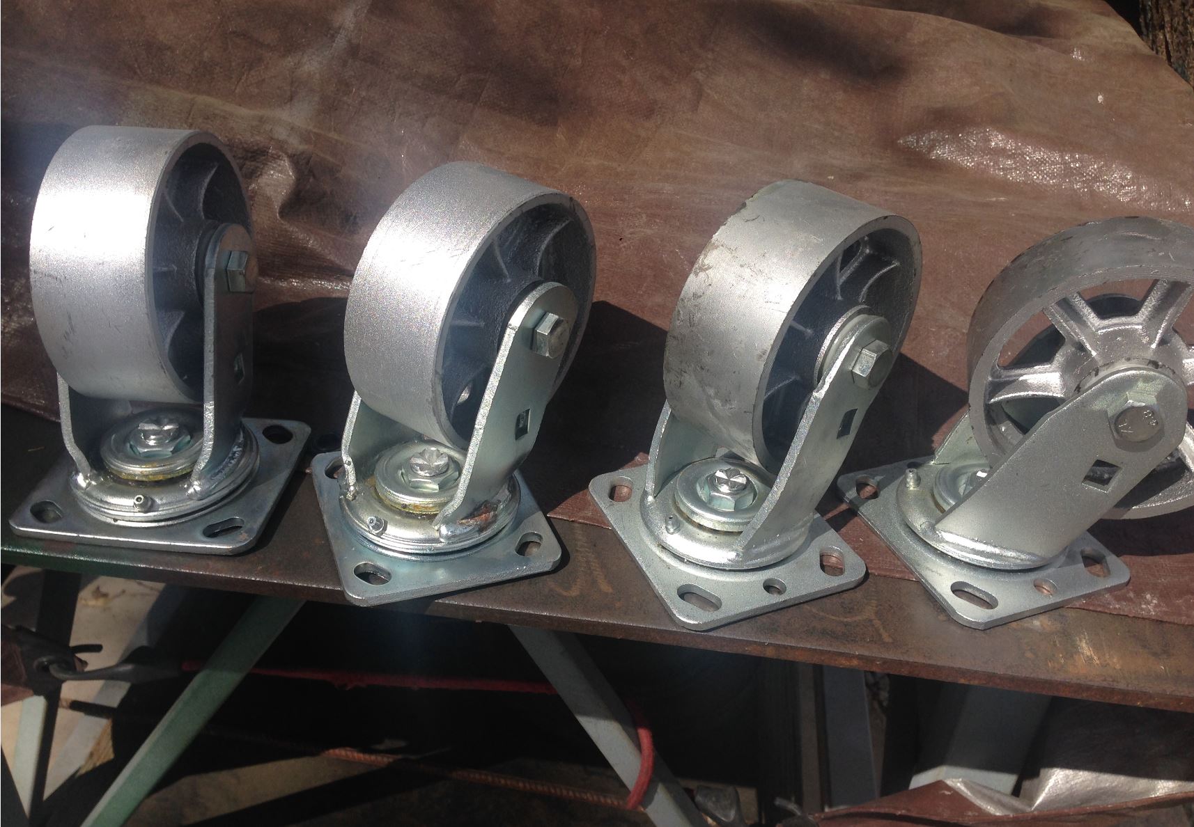 These are the 2x2's that I will use for the webs These are the 4x4's that I will use for the table platform and legs Here are the casters I also picked up some samples of Fine, Medium and Coarse recycled glass for the wet sandblasting. I'll try each to see which works better. Planning on blasting the suspension clean as well. I'll probably be using the fine for the aluminum blasting. I know guys use glass beads for aluminum but that is for delicate surfaces. The suspension is hardly a delicate surface so we will see how it pans out. |