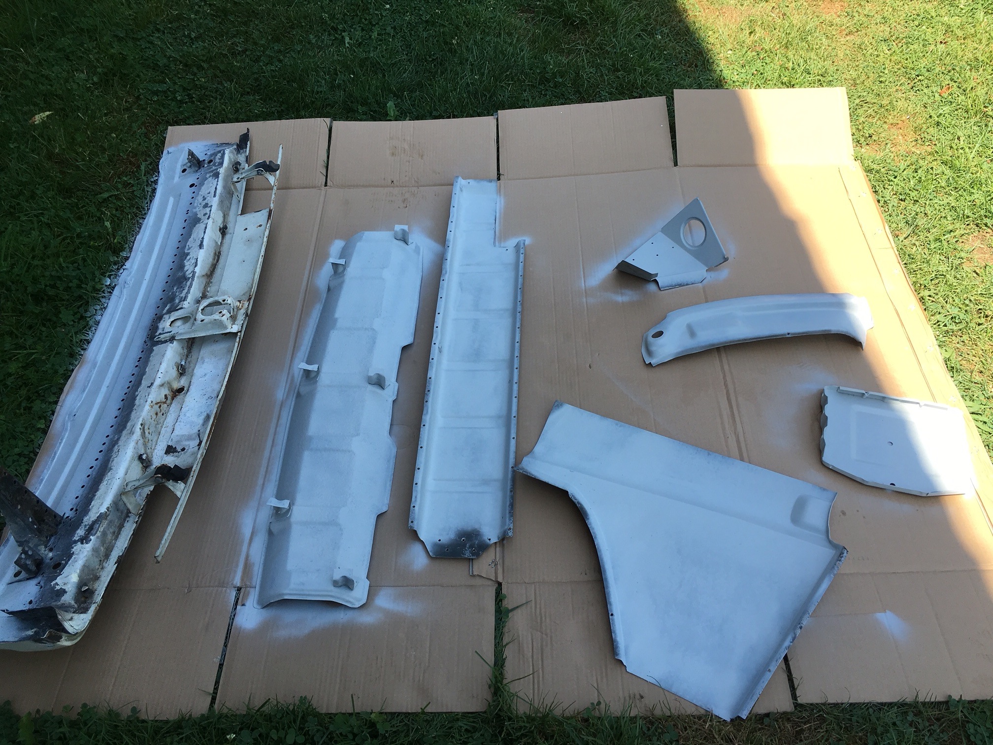 This was the perfect opportunity to try out Eastwood's two part Epoxy in a can. I coated inside the long and the back side of a few parts that I still have to install. Overall its a pretty decent product. It sprayed well and it had more in the can than I thought. It was great for a smaller area. When I paint other areas of the car though, I will use regular spray gun epoxy.