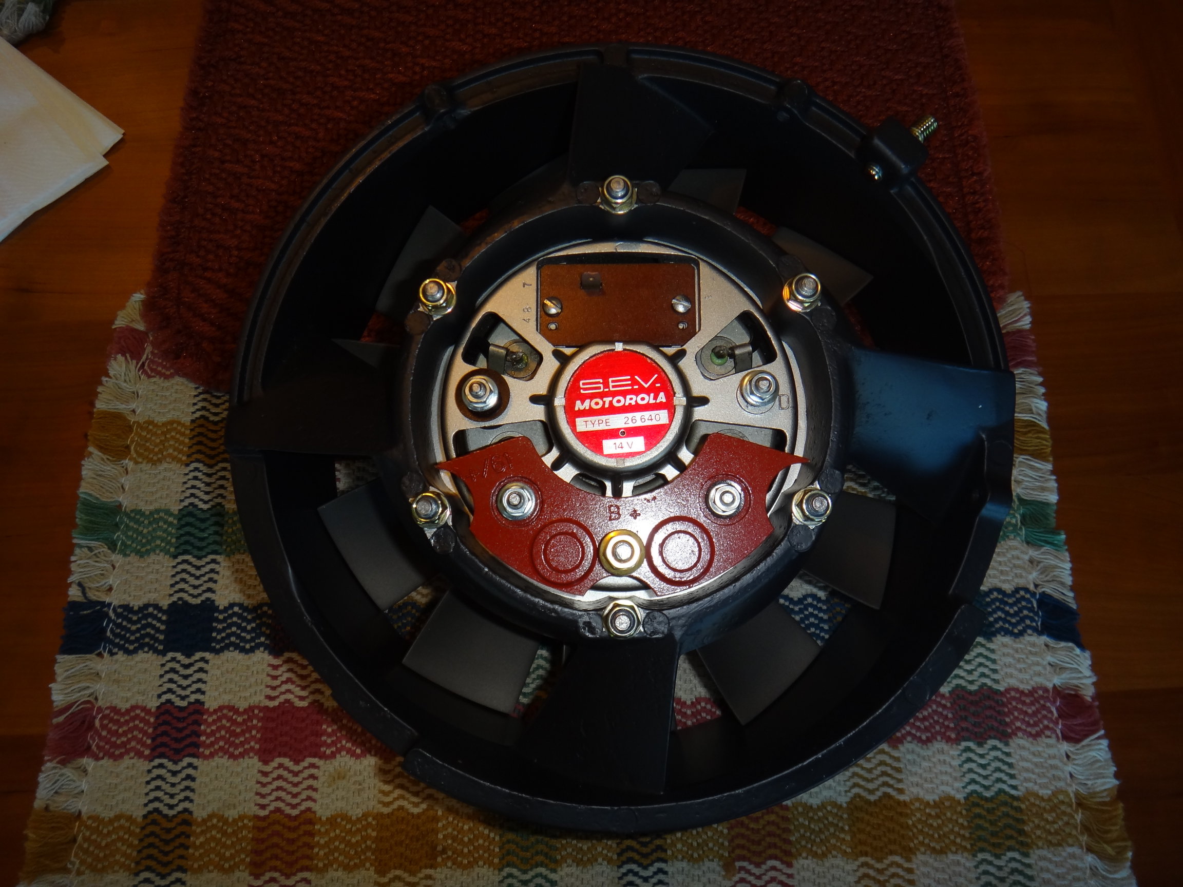 Some guy has a buddy through 911 S Registry....yada yada. Anyway, the alternator reappeared in mint condition. Cosmetically and functionally. I had bad diodes, brushes, etc. All replaced with new bearings plus a cometic restoration as well. Combined with the restored fan/shroud from an Early S vendor, and that part of the engine is looking brand new. Shame it will be buried in the engine compartment never to be seen. Guess I'll just print out a poster sized pic of the finished engine (Rothsport) to put in my man cave. (IMG:style_emoticons/default/tongue.gif) Guess I need to post pics of the amber fan shroud the Damon at Series 900 built for me. Really goes well the the fan/shroud. |