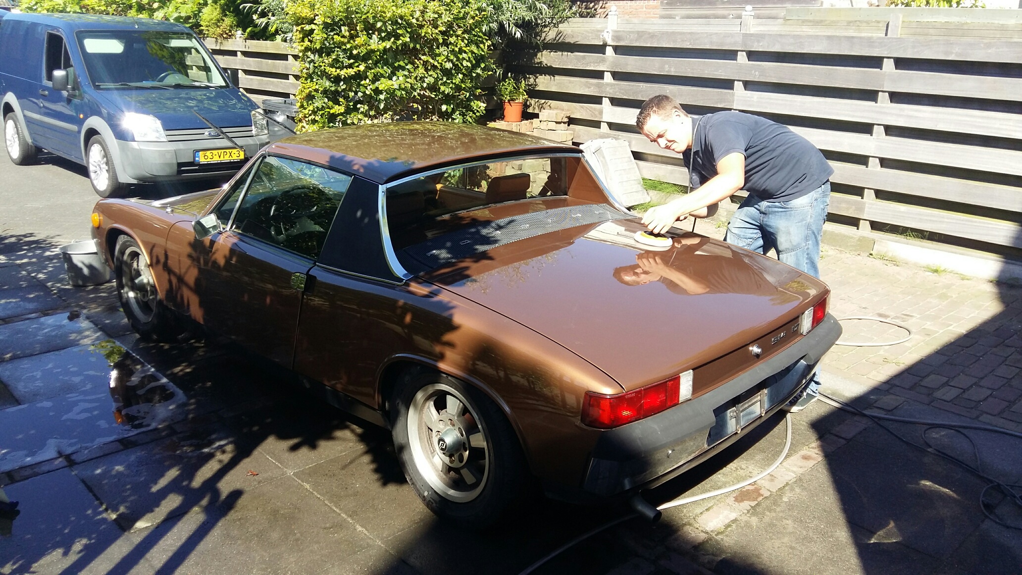 It took more time than expected, but it looks nice again, just like how it was when it was bought (before the shipping started). Yes, that is a beetle in the back, it's job was to hold the 914 targaroof during the cleaning :-) From now on I can start on the work on the 914, and I will create a list of things to do after the first tech checks. To be continued ! |