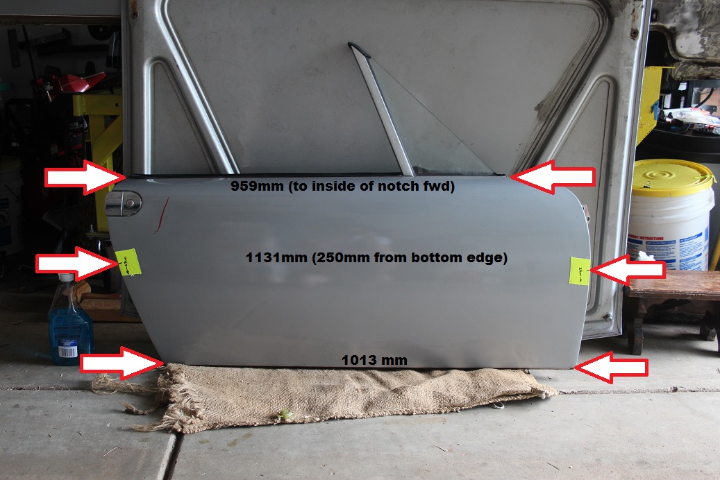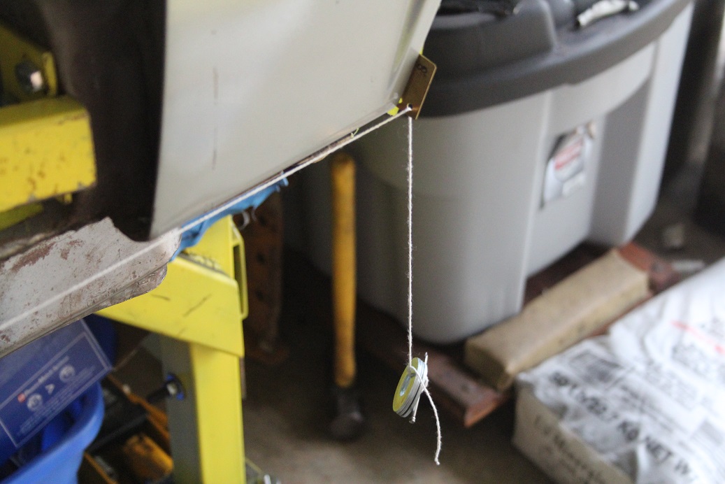Now the car is mounted on 4 points again and I can adjust to get those points level. But the two halves are tilted away from each other. I can adjust the door braces to fix that, but I need to know how much.