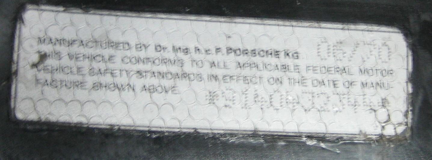 VIN tags look all wrong. No pictures of the VIN in the front trunk. Porsche/Karmann never stamped their numbers that straight. The tags don't look OE. The door jamb sticker is obviously a reproduction. Attached thumbnail(s) |