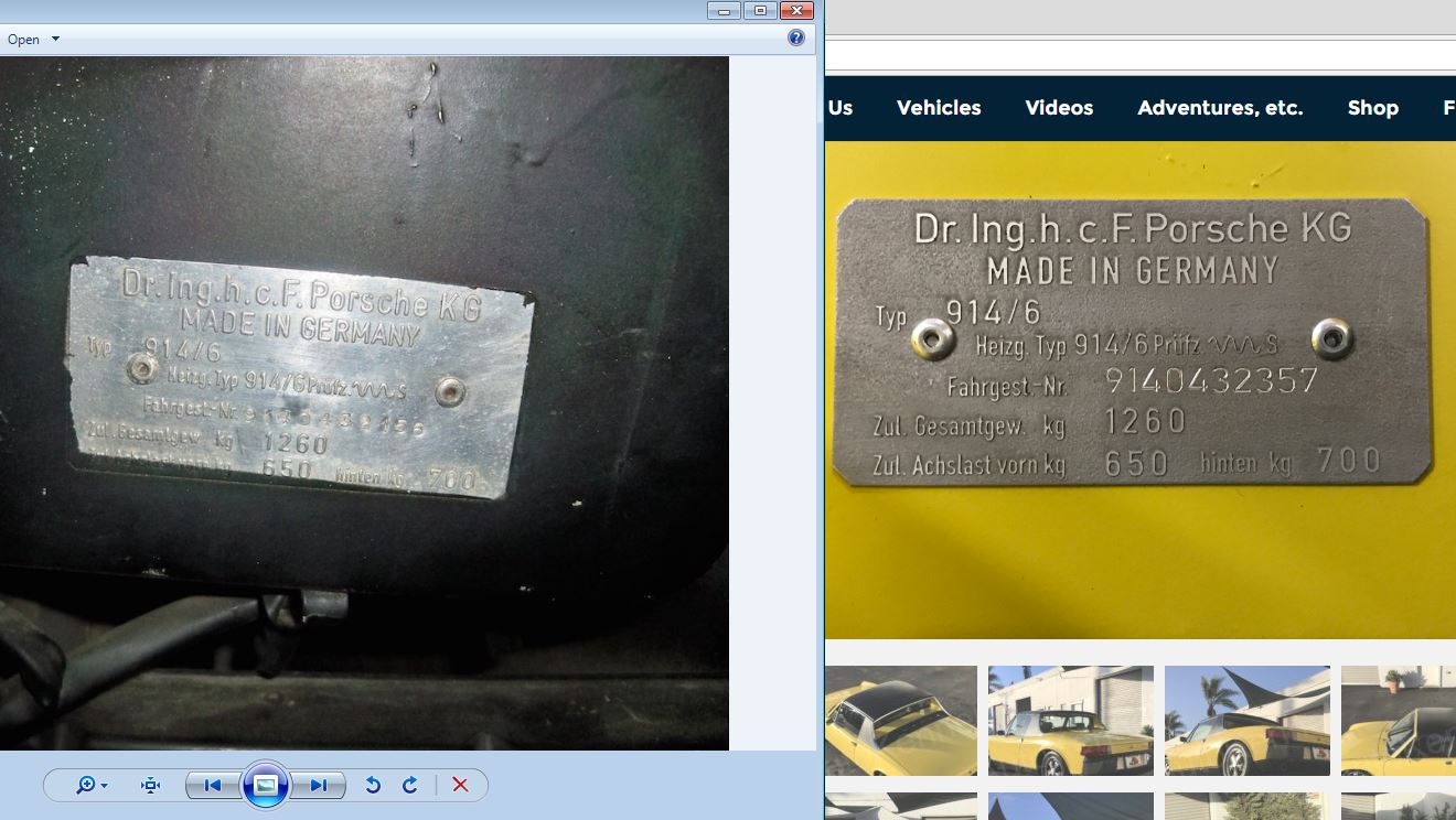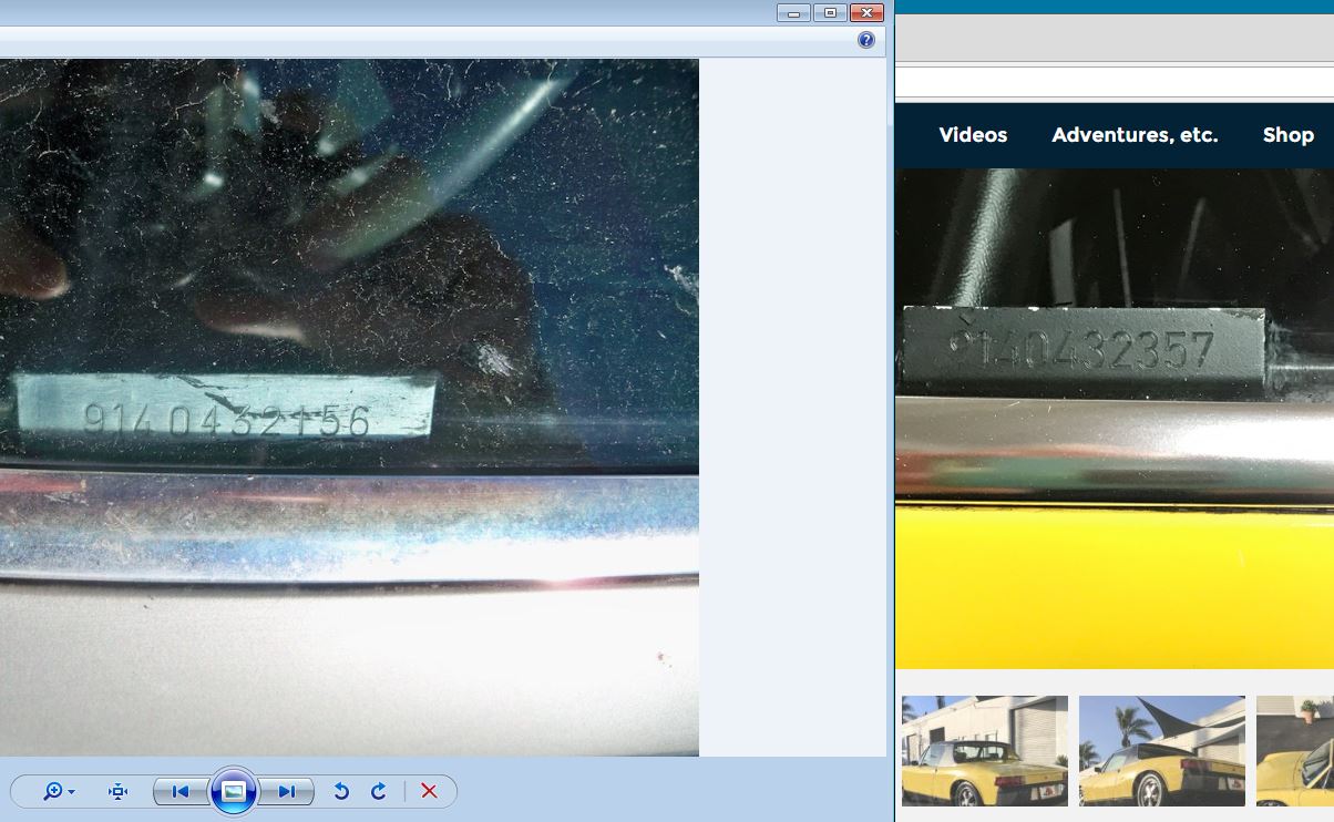 VIN tags look all wrong. No pictures of the VIN in the front trunk. Porsche/Karmann never stamped their numbers that straight. The tags don't look OE. The door jamb sticker is obviously a reproduction. Attached thumbnail(s) |