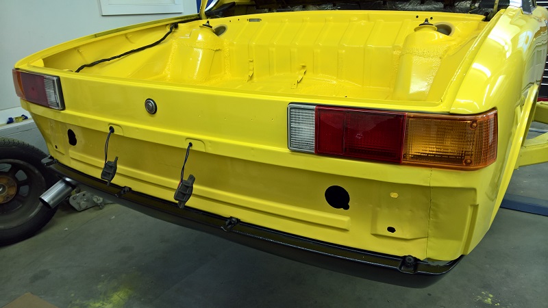 Got the Headlight supports Powder coated. The most work was to get them all clean blasted. (IMG:http://www.914world.com/bbs2/uploads_offsite/airboxer.com-12404-1482330697.1.jpg) Installed (IMG:http://www.914world.com/bbs2/uploads_offsite/airboxer.com-12404-1482330697.2.jpg) (IMG:http://www.914world.com/bbs2/uploads_offsite/airboxer.com-12404-1482330697.3.jpg) Front Bumper is mounted. (IMG:http://www.914world.com/bbs2/uploads_offsite/airboxer.com-12404-1482330698.4.jpg) I just need to come up with a solution for the fog lights. I want to use the fog lights which were on the car with the rubber bumpers. But I will have some time to think until it's drive time again. (IMG:http://www.914world.com/bbs2/uploads_offsite/airboxer.com-12404-1482330698.5.jpg) Getting the rear side ready. (IMG:http://www.914world.com/bbs2/uploads_offsite/airboxer.com-12404-1482330698.6.jpg) Bumper is installed. (IMG:http://www.914world.com/bbs2/uploads_offsite/airboxer.com-12404-1482330699.7.jpg) Just need to find a nice plate holder and a plug for the hole. (IMG:http://www.914world.com/bbs2/uploads_offsite/airboxer.com-12404-1482330699.8.jpg) That's it for now. Need to do get back on the 1970 911. Happy Holidays to all Engelbert |