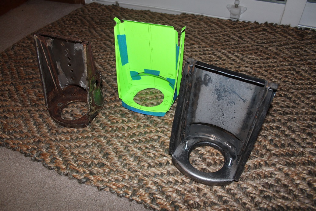 Welded together. I used weld through primer where there are flanges here. The bottom piece is just bolted to the main part of the bracket, I need to fit it to the long and to my dolly/jig and some bends may need a little tweaking. |