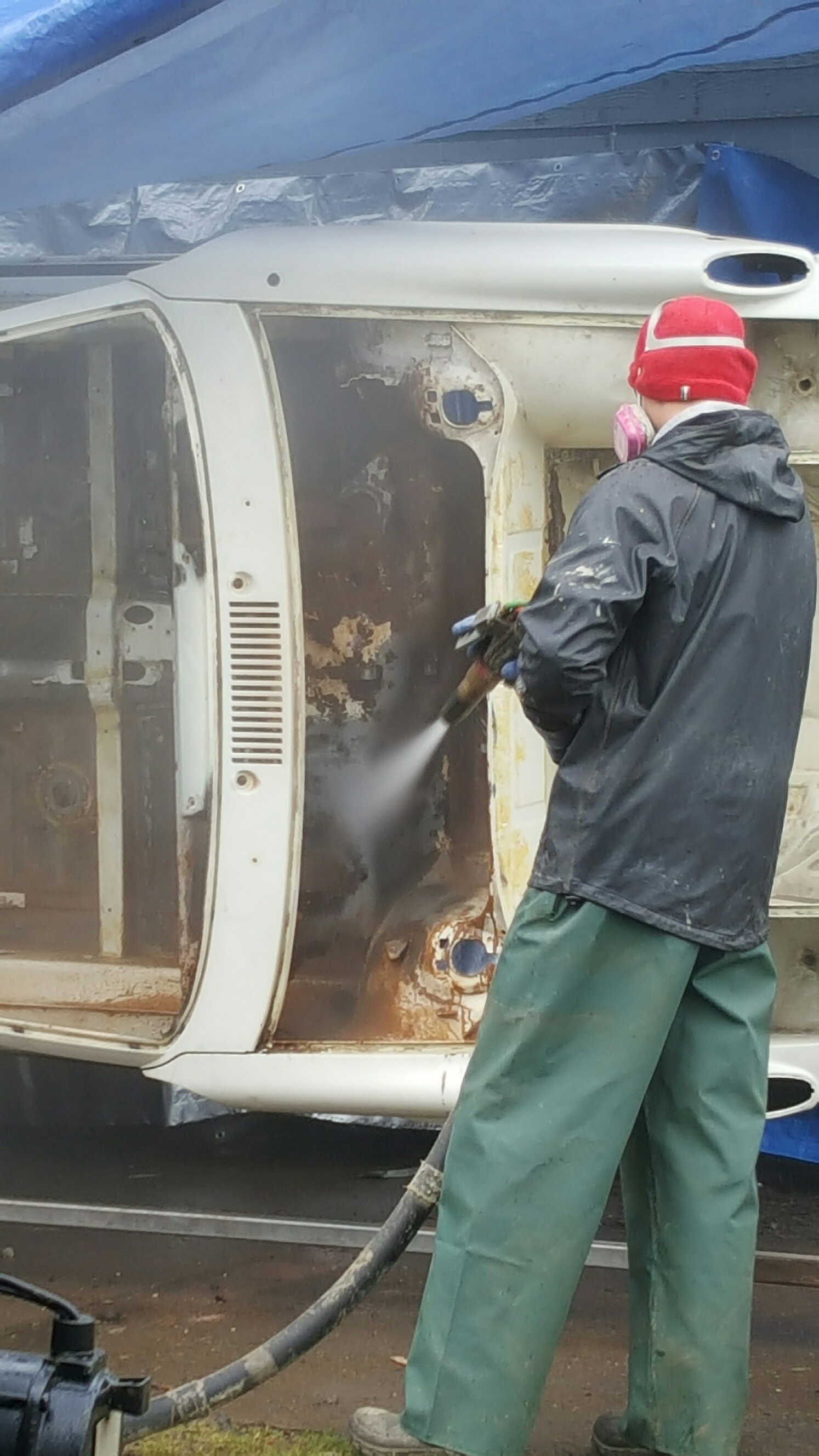 Wes was nice enough to hook Taylor up with a roller project. He drove down to Mendocino to get it about 3 weeks ago. We finally have it in a place we can work on it and started the clean up.
