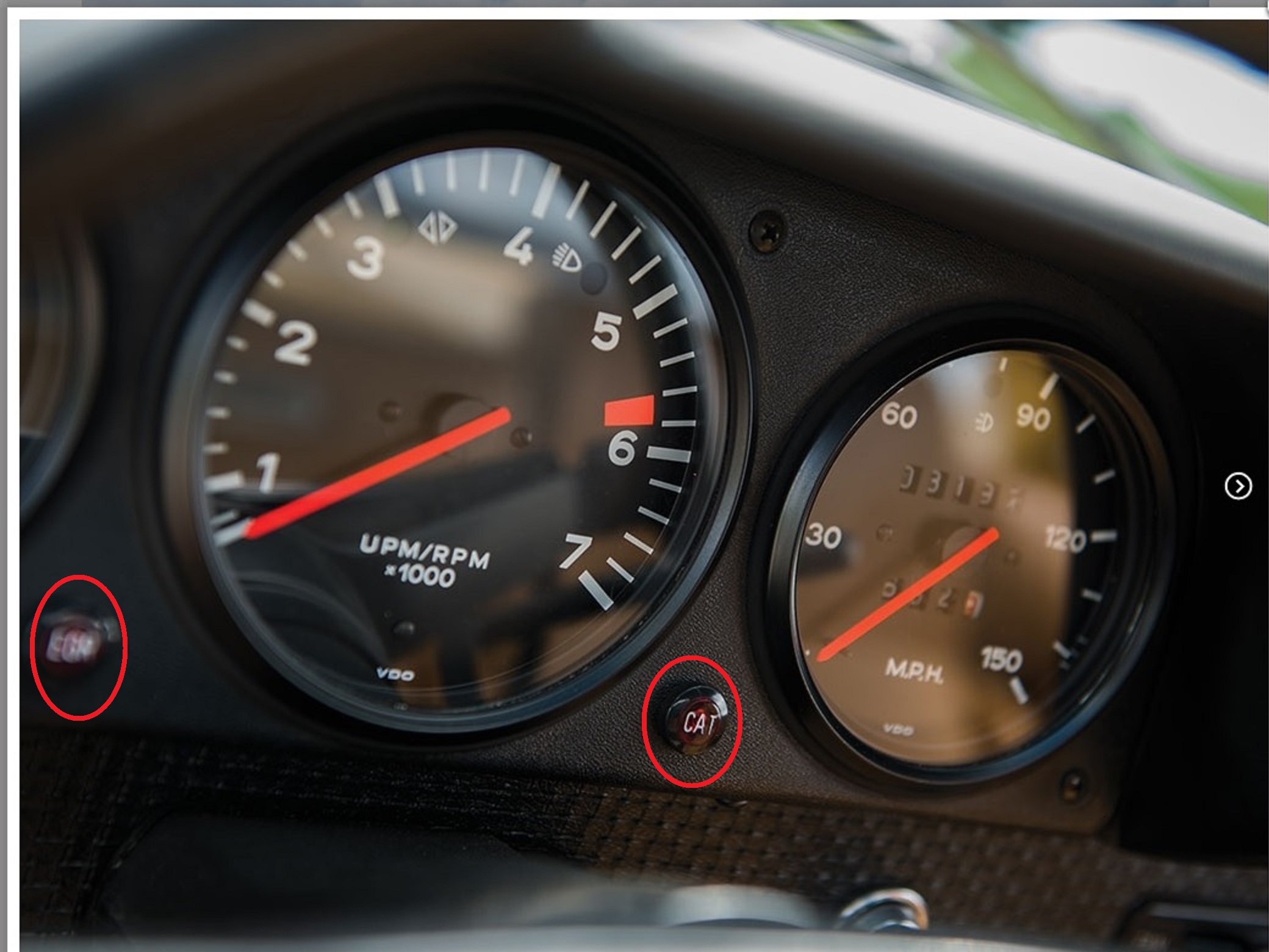 I just bought a 1975 1.8l project that was built in 1/75. This low mileage car was built in 12/74. My gauge cluster dash does not have the EGR and CAT lights. Did a previous owner remove them from my dash or did Porsche remove them? I think that is the California only EGR version. My 1975 1.8 doesn't have them either. There is also a device that counts the miles until the catalyst needs replacement and that turns the light on. Can see the extra egr stuff in the engine pictures. |