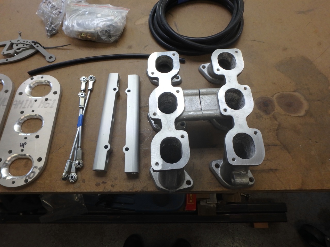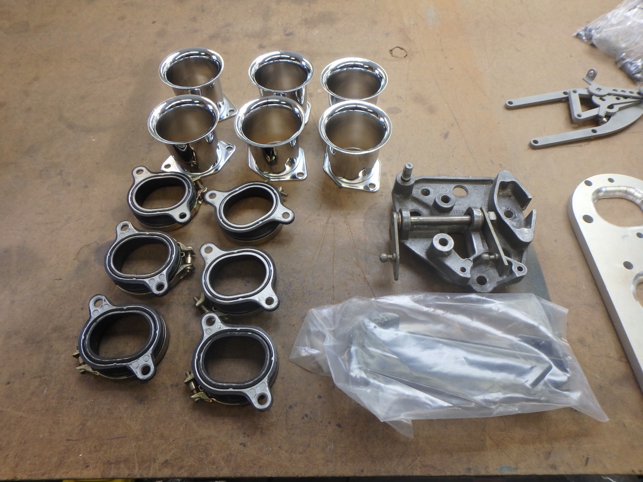 (IMG:style_emoticons/default/piratenanner.gif) That means I can start working on the front swaybar install now. I have also decided that a none running 914-6 is a not fun 914-6. So I got a few parts in today, and will be picking up something to help move this along from Mark this week. This might help you identify what I am about to do. And these should help you a lot. Cats is out of the bag (IMG:style_emoticons/default/shades.gif) Manifold and other parts to bust on a set of Triple Speeds to a 911 engine. EFI and modern spark in a 914-6. I really hate carbs and was going to stick with them, but now the stock carbs, will stick with the original engine and trans. No reason to screw up original parts when you can add a bit more go while in the end spending less or the same dough (IMG:style_emoticons/default/happy11.gif) That is it for the updates, hopefully I will get to getting the front swaybar installed and some other bits done tomorrow in-between painting another project. |