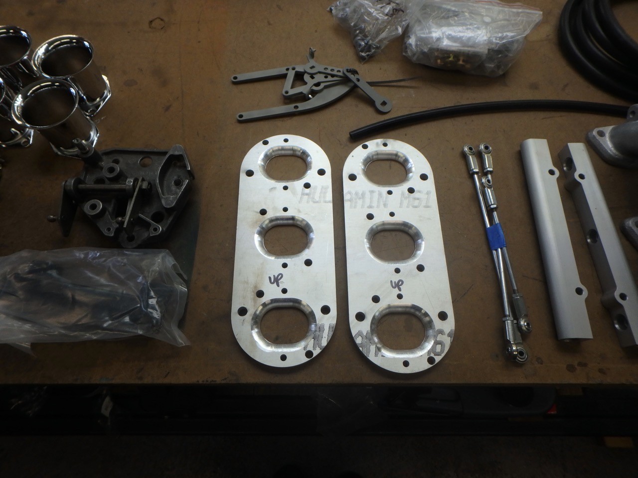 (IMG:style_emoticons/default/piratenanner.gif) That means I can start working on the front swaybar install now. I have also decided that a none running 914-6 is a not fun 914-6. So I got a few parts in today, and will be picking up something to help move this along from Mark this week. This might help you identify what I am about to do. And these should help you a lot. Cats is out of the bag (IMG:style_emoticons/default/shades.gif) Manifold and other parts to bust on a set of Triple Speeds to a 911 engine. EFI and modern spark in a 914-6. I really hate carbs and was going to stick with them, but now the stock carbs, will stick with the original engine and trans. No reason to screw up original parts when you can add a bit more go while in the end spending less or the same dough (IMG:style_emoticons/default/happy11.gif) That is it for the updates, hopefully I will get to getting the front swaybar installed and some other bits done tomorrow in-between painting another project. |