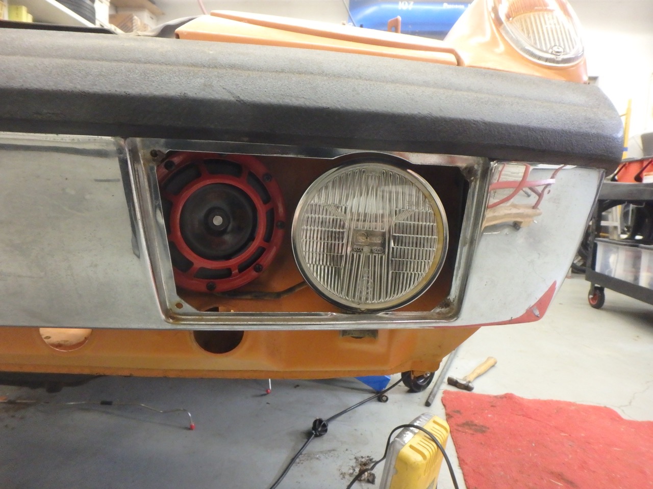 First up horns, each bracket needed to be clocked correctly. And the electrical posts needed to be bent from 90 degrees to 0 degrees or maybe 1-2 degrees if your wanting to be picky. The Horns are Hella SuperTones, 130dB Might keep somebody from running over the top of the 914. (IMG:style_emoticons/default/dry.gif) Next up cleaned up the Cibie Friving lights. Wow they where dirty (IMG:style_emoticons/default/confused24.gif) Both sides mounted up Need to find some SS screws to mount the grill covers with, anyone know the screw size off hand? Back to the sway bar installation JB Welded them in. Brad says that will work, and in reality your clamping these, and just keeping them from falling down behind the gas tank. That would suck. If it becomes an issue, it is not like I don't know my way around welders (IMG:style_emoticons/default/av-943.gif) In the wheel wells, once set I will hit them with a top coat and then undercoat them. Just to make it match what Dad had done. Been working on my second set of Mini-Lites the first set is going up for sale. Last but not least some brake Porn (IMG:style_emoticons/default/drooley.gif) PMB, a sourced set of Brembo Alpha calipers, and speed bleeders (IMG:style_emoticons/default/drooley.gif) Alphas Much bigger than the 914-6 fronts (IMG:style_emoticons/default/aktion035.gif) And they are Aluminum (IMG:style_emoticons/default/aktion035.gif) Much lighter to boot (IMG:style_emoticons/default/aktion035.gif) And I ordered to many speed leaders, did not realize they come in pairs. (IMG:style_emoticons/default/headbang.gif) Yet it worked out because the Alpha Calipers required a M10 bleeder and I just so happened to have 4 sets for my EG build, that is using Boxster Calipers which are also M10. (IMG:style_emoticons/default/piratenanner.gif) For once a mis-order worked for me. Speed bleeders going into the classifieds also. At a fraction of the orginal cost (IMG:style_emoticons/default/shades.gif) Attached thumbnail(s) |