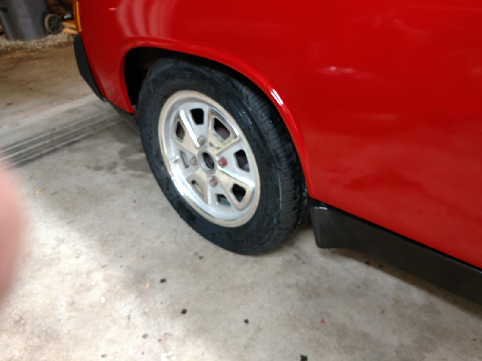 Trunk goes in tomorrow, (IMG:http://www.914world.com/bbs2/uploads_offsite/www.thesamba.com-17371-1513650840.1.jpg) Pics of me getting the rear trunk tensioner rods leverazged back into place (IMG:http://www.914world.com/bbs2/uploads_offsite/www.thesamba.com-17371-1513650840.2.jpg) And engine bay is by no means pretty, but will be done when I get to point of installing new motor. (IMG:http://www.914world.com/bbs2/uploads_offsite/www.thesamba.com-17371-1513650841.3.jpg) In the absence of any replacement rollers for the rear trunk roller, a little massaging with a lathe, and voila, function. (In final product, it is cradled in the groove.) (IMG:http://www.914world.com/bbs2/uploads_offsite/www.thesamba.com-17371-1513650841.4.jpg) And lastly tonight, the Fuchs with 205/60/15. A little tight up front, but they do clear the shock. (IMG:http://www.914world.com/bbs2/uploads_offsite/www.thesamba.com-17371-1513650841.5.jpg) |