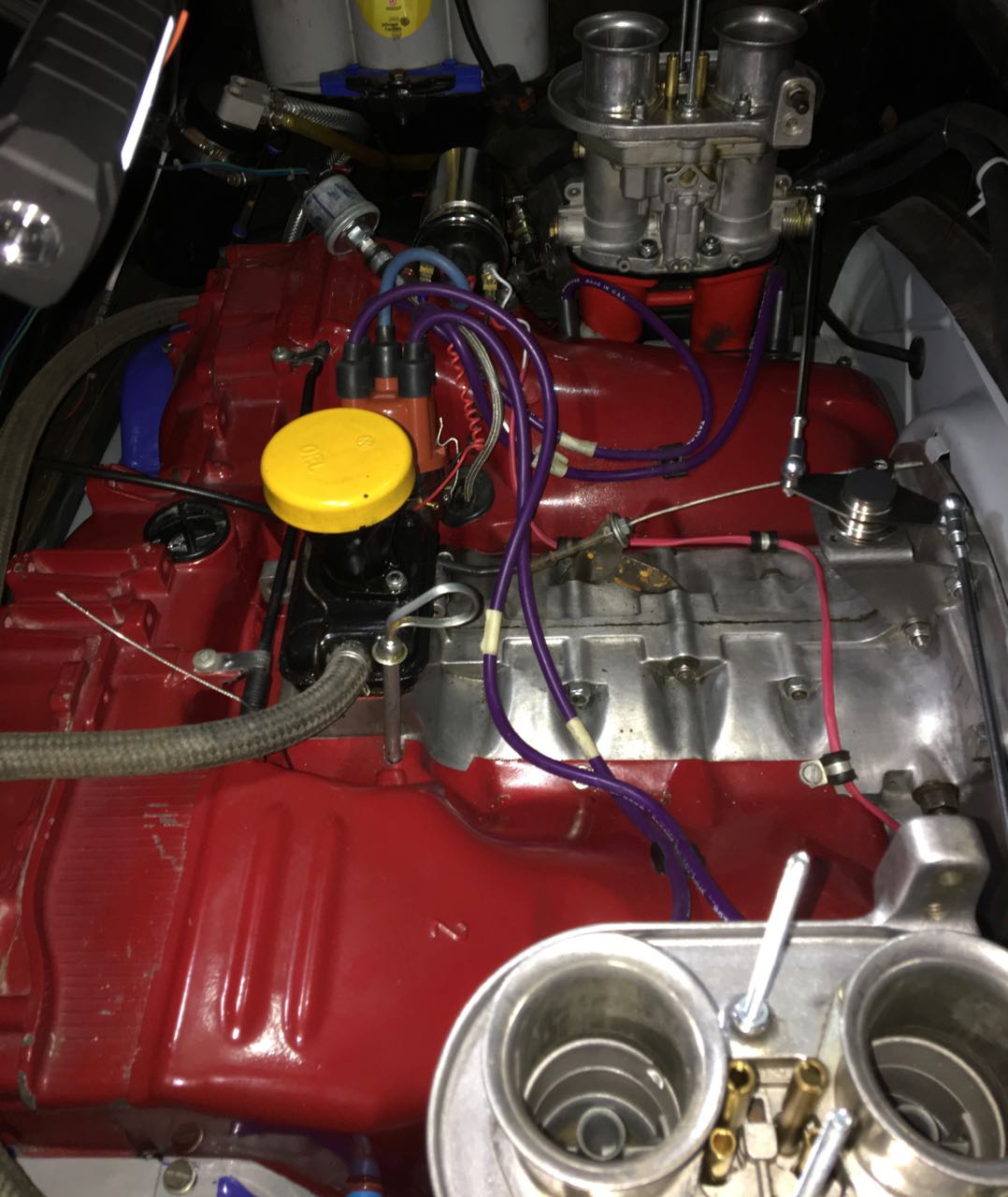 Here's pictures of the stuff that's in there now. I guess that's the infamous Bosch 009 with no vacuum advance and a PerTronix 1847A. The carbs are Dellorto DRLA 45s with short velocity stacks and these tall foam things that don't seal against the air cleaner housings. I'm willing to learn about the carbs but I don't have much confidence in the 009 for running nicely on the street. Please correct me if I'm wrong about any of this stuff. Also from other threads I gather that switching to EFI such as MicroSquirt would cost $5K or so ... though I'm not ruling this out completely. Correct me if I'm wrong about that. Is this kind of linkage OK? Here's the idle you may have seen in another post: https://www.youtube.com/watch?v=-AC53RRrXOU Any help you can provide is appreciated! --Michael in Seattle |