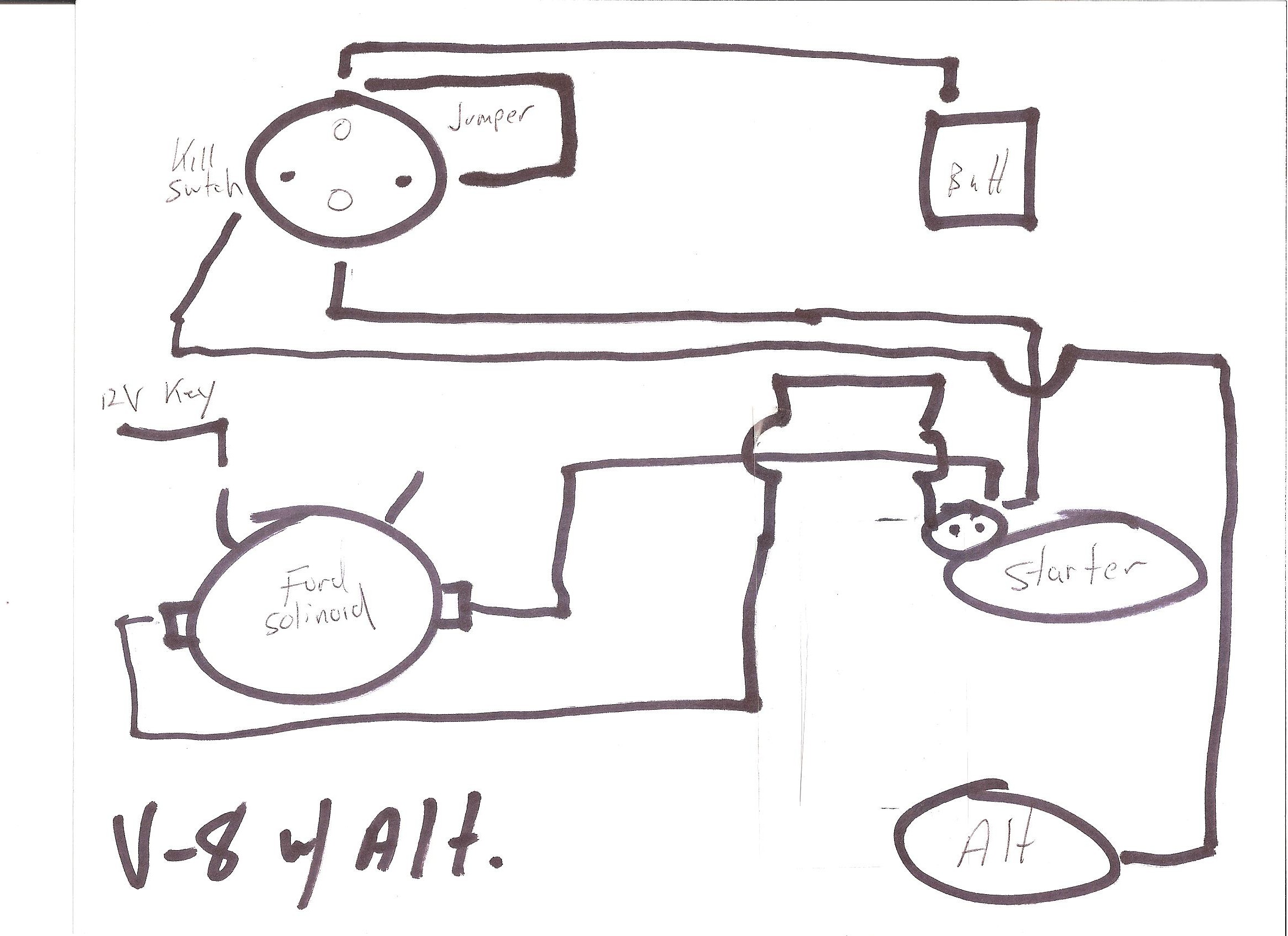 Previously I had wired in a Ford relay on my sbc converted 914 with a standard alternator per Mark's diagram (an-noted below) as I had been experiencing the well known "hot start" problem. The fix worked great! Then I decided to add a track "kill switch" mounted where track workers can get to it in an emergency and therein lies my problem. When I wire it up per the manufacturer's directions (my diagram below), it works great with one exception...my hot start problem has returned. Anyone got any idea's? Marks diagram (an-noted) with no kill switch. Hot start problem solved. My diagram including addition of a kill switch. Hot start problem returns |