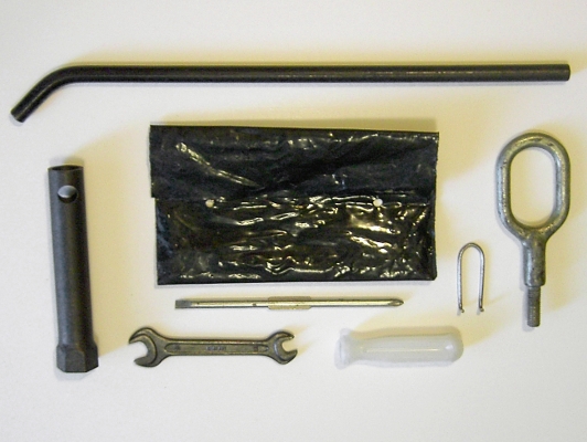 http://www.autoatlanta.com/Porsche-7-piece...B411012021.html And 73-76: http://www.autoatlanta.com/Porsche-Tool-Ki...411012021B.html Mine is an early 73 (662). A different source shows the following for early 73: http://www.p914.com/p914_tools_kit-73_early.htm The latter includes a towing eye, hubcap removal tool, and spark plug tool. AA's kit doesn't have this, though the towing eye is sold separately. Although this site says that not all early cars had the white screwdriver handle, the shape in the pic appears like the AA 70-72 kit. So I'm left wondering, which is accurate? My car only has the tommy bar and lug wrench. |