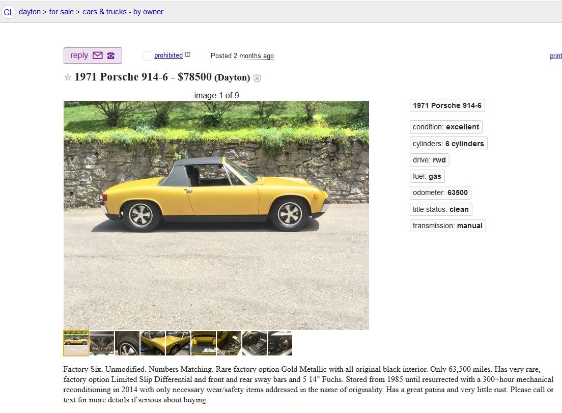 Gcthielen 1971 914-6 For Sale. Very original. Jun 19 2018, 08:45 AM