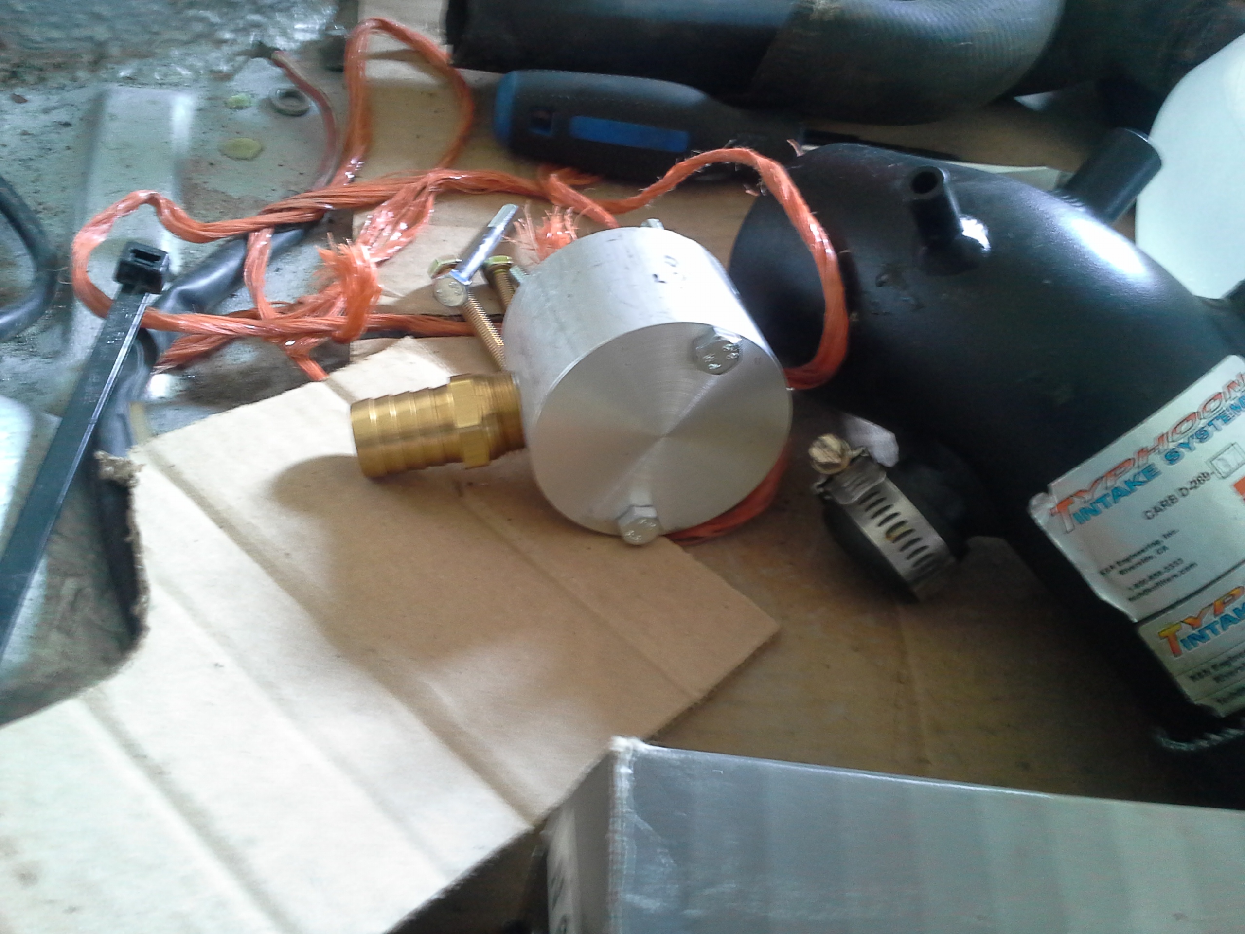 Rad in, custom water outlet from back of head for space... Working on fuel today. removing electric pump from under the tank. the injection pump has it's own vane pump in the front for a primary pump. Wouldn't hurt to leave the electric, but it would run constantly instead of shutting off because the injection pump bypasses excess fuel back to the tank. Would make priming the system really easy but I don't want to listen to it. The exhaust is straight up just until I get to the muffler shop. |