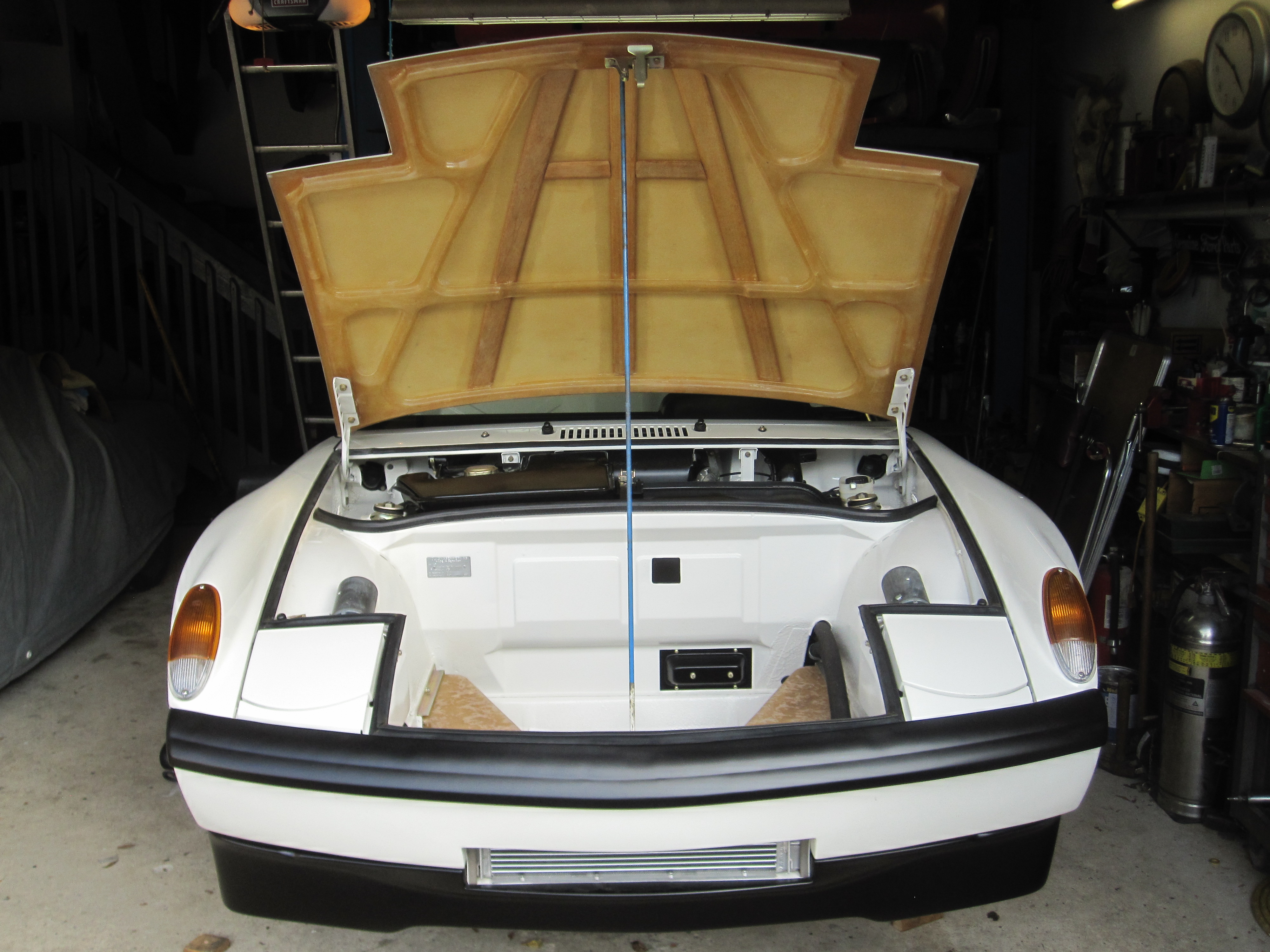 Also got the headlights installed and roughly adjusted. With those tasks done it was time to add the hood. Every day there's more to do. The refinished wheels are still almost two months away. Attached thumbnail(s) |