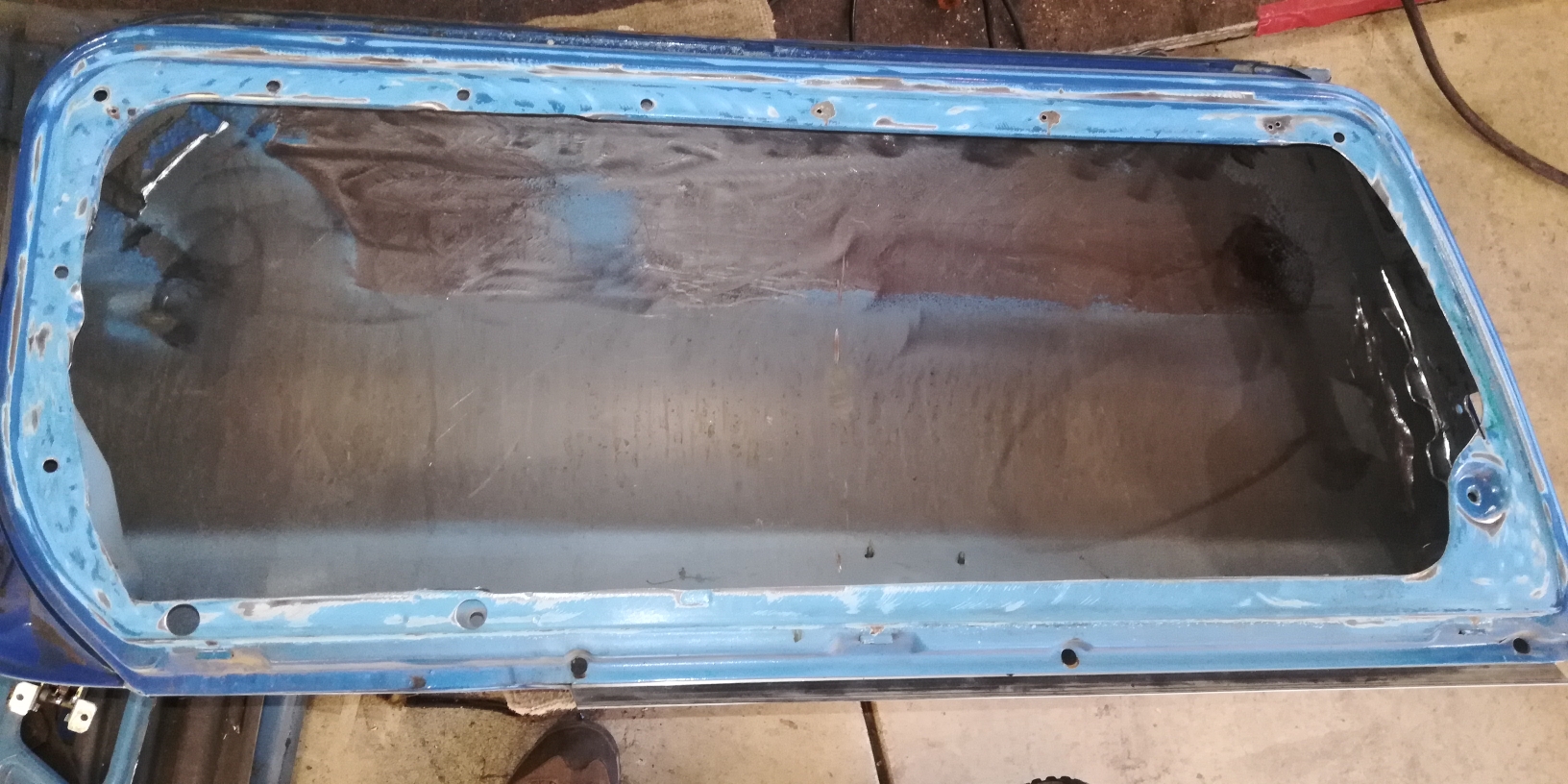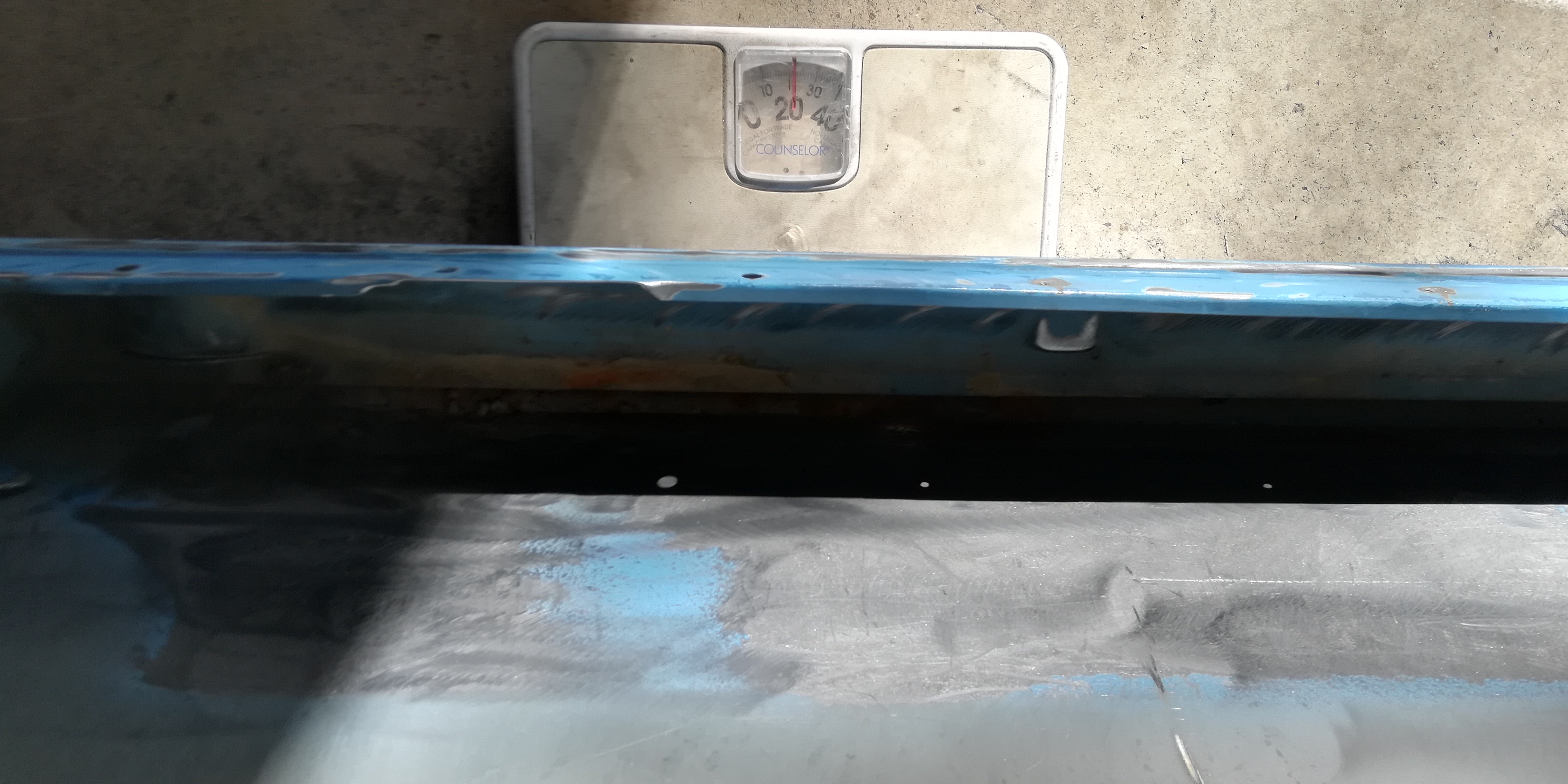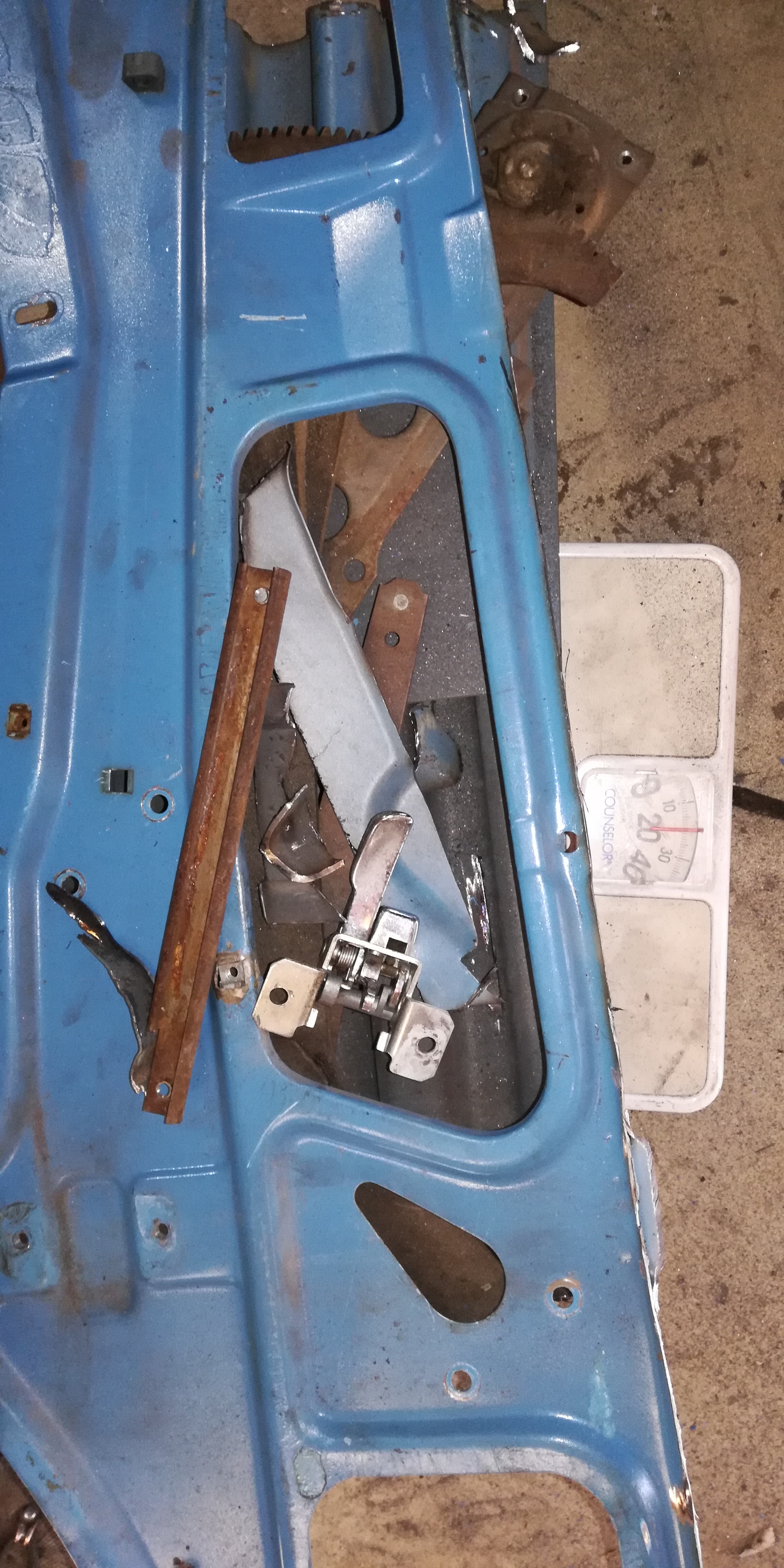 I did as suggested and just cut it as close to the edge as possible with a 3” cutter. I kept chipping away until I could get no more. My total door bar/beam weight removed was about 13-14#. As is with a door latch, no windows 21# Add-in the glass windows guides and door latch 35# All items removed beams, window mechanism, sheet metal 20# Seems consistent since I started with 55# for the full 1975 door. |