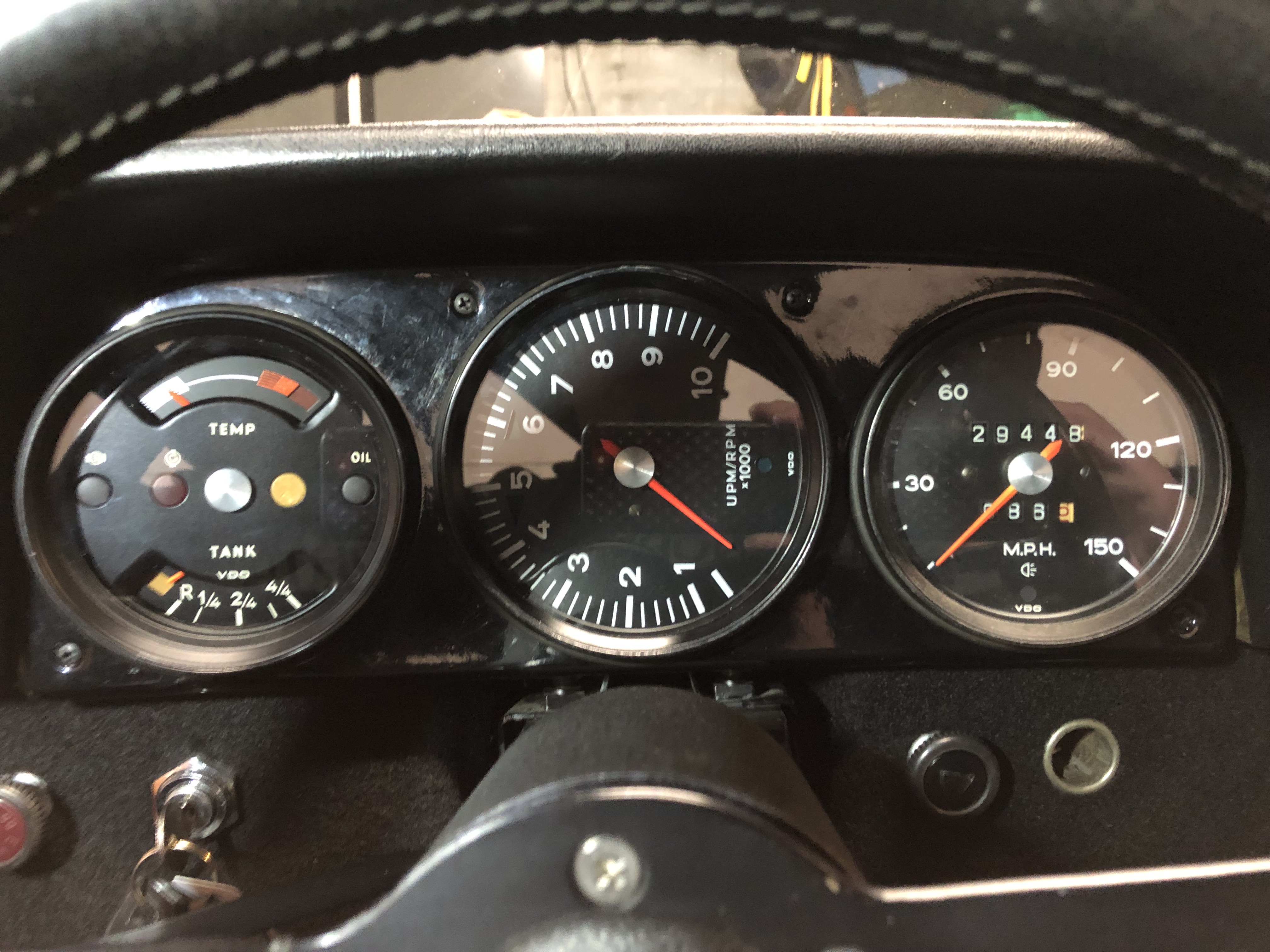 http://www.914world.com/bbs2/index.php?sho...719&hl=tach …which details the steps necessary to improve the original VDO tach performance and provide better transient and damping response, coupled with a more universal input. If you’re not familiar with this DIY tach upgrade, best read that first. Given the flexibility and performance upgrade of retrofitting the SunPro/Bosch innards into the VDO casing, I took on the challenge of seeing if a 10K racing tach could be constructed around an early 914-4 tach housing – with a target cost of $100. Read on if this piques your interest; move on if you don’t think this sort of thing is necessary or sensible. A 10K tachometer was an essential part of the GT cars (and other Porsche race cars too), which typically had no redline area indicated under the glass, such that the actual redline could be indicated with a marker or tape, to suit the particular engine build being run for that event. Original 10K VDO units appear for sale occasionally, but the prices are usually prohibitive. I ordered the Bosch version of the SunPro via Amazon, and disassembled it using Tim's post as suggested: There is some metal fabrication necessary to get the donor VDO fascia to mate up to the new core. This is not difficult, the only thing you may not have around is the M2 tap. Getting the right fascia: So I toyed with idea of using a drawing or graphics package to replicate the 10K tach face, then somehow print a design on to vinyl, trim it, then glue that over the existing -4 face. Then I realized that I was never going to get round to doing that, so looked at other options. I ended up buying a printed and finished insert fascia from these guys: https://www.heiler-tachodesign.de/Tachomete...ithout-red-Area Not a cheap way to get a result, but they a) offer multiple choices to match various Porsche VDO tachs and other gauges, b) the quality of the fit, paint and graphics are exemplary and c) without the talent and tools for “rolling your own”, there are very few other options. They also allow you to pick custom colors and lettering if you so desire. It took about 2 weeks to arrive, I also ordered a 914-6 style temp gauge replacement at the same time, total cost for both gauge faces including shipping was about $93. So, $100 target blown already - the tach core is around $35 - but still in the ball park. |