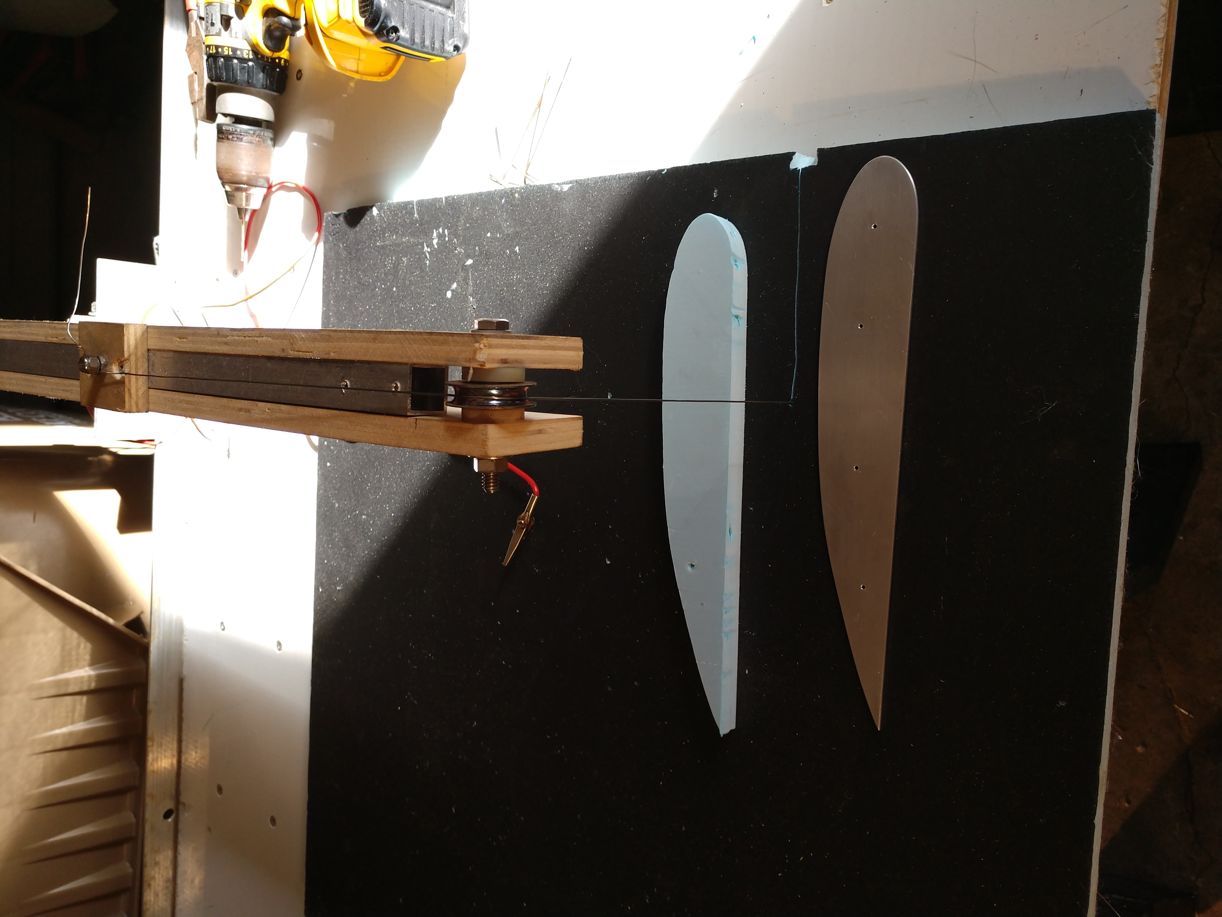 Been working on everything but Carerror. Got the ceiling done and had some left over foam so I figured I could play with the car with it. We'll see how it goes. The last time I didn't have any idea what I was going to do to the car I wound up with a cowling and 2 windscreens. Nice... She does not have roll over showing scuff marks on the inside edges of the front tires. the front tires are down to 14.5 psi and I am thinking that less camber and air might do the trick but another 15 pounds of weight might help. Look, I am not thinking of down force just breaking up the air flow and adding about 15 pounds of wing out in front of the nose of the car. Any down force would be a bonus. I just want to see the inside edges of the front tires turning blue like the rears.
