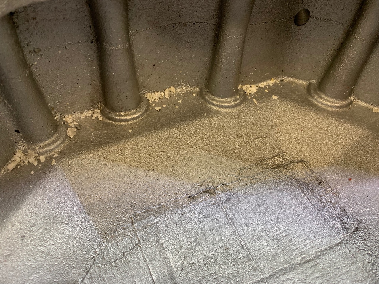 While in the shop I dug out my Smaller oil pan, had not even opened the box. Pan is interesting to say the least, cast aluminum, looks decent. But what I found inside made none too happy. What is that crap at the bottom of the pan? And who the hell fixes a mold with duct tap, and then uses it to create the sand cast? (IMG:style_emoticons/default/poke.gif) Well I found the crap at the bottom of the pan, I had small car modify the pickup tube. Now that I know what they did, I might have to redo this one. (IMG:style_emoticons/default/headbang.gif) And well that explains the crap in the pan. (IMG:style_emoticons/default/WTF.gif) It is inside the pickup screen also. Hard to see but that crap is in there. So Scott I would recommend you modify the pickup your self if your using this pan. I will keep this one out of the car and most likely use the one from my my running engine to build another one. And to answer the question. 4 1/8" from flange to table. You can figure out clearances from there. Being cast AL, I might drop an Aluminum Skid plate under it.Just to make sure I don't lose it some how. VW has cast AL pans on some of the Jettas, and well the wife cracked one hitting a man hole cover, right place right time sort of thing. Idk why the pickup tube was done like that. Ive met the welder they get to modify all of those pickups (he does hundreds at a time) and all of them are just tig welded. Ive never seen one he’s made, including the one i got personally, thats looked like that (IMG:style_emoticons/default/blink.gif) you must’ve really gotten the oddest of ones out. I also didnt junk in my pan when i got it, though I don’t remember the duct tape in the casting or not. |