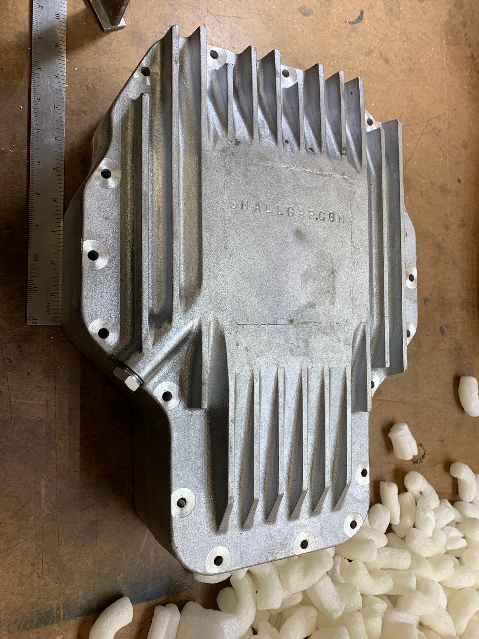 While in the shop I dug out my Smaller oil pan, had not even opened the box. Pan is interesting to say the least, cast aluminum, looks decent.