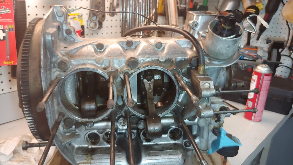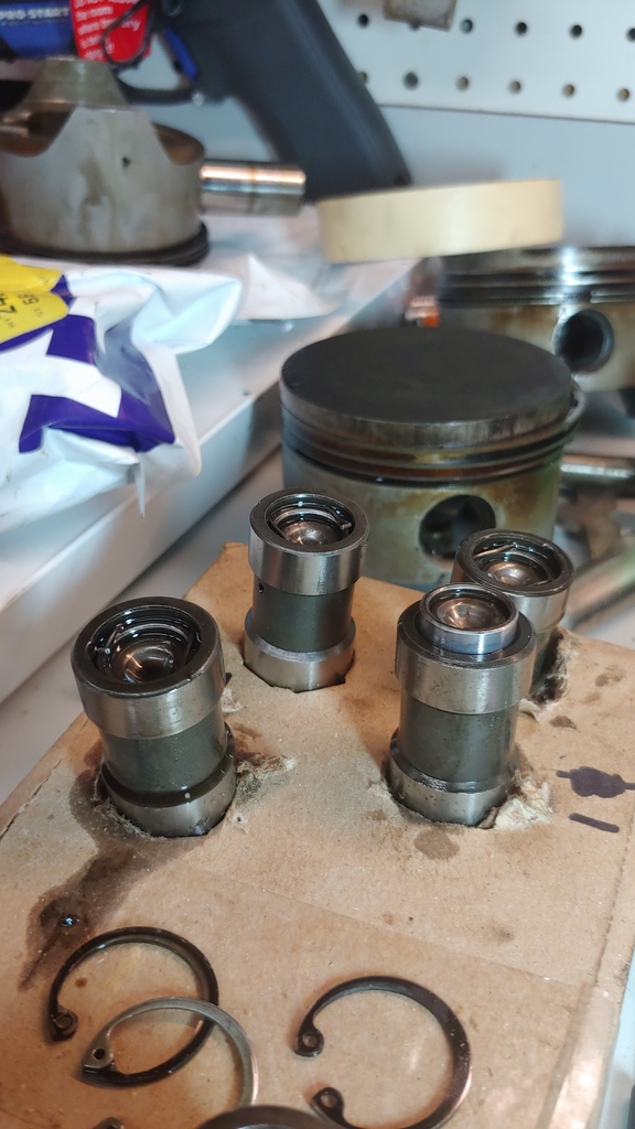(IMG:http://www.914world.com/bbs2/uploads_offsite/i582.photobucket.com-21387-1547084992.1.jpg) Got the engine disassembled down to the case for the most part. (IMG:http://www.914world.com/bbs2/uploads_offsite/i582.photobucket.com-21387-1547084992.2.jpg) Noticed that the lifters are bad. One was missing the retainer spring as per the picture below. This just so happens to be the same cylinder that had a bent push rod. Coincidence, I think not. (IMG:http://www.914world.com/bbs2/uploads_offsite/i582.photobucket.com-21387-1547084993.3.jpg) Now I need to buy some parts so I can split the case replace the cam and start the rebuild process. Some questions I was hoping you guys can help with: 1) My dad's cousin (whom I've never met) works on air cool VW for a living. He said to keep the motor at a stock 2.0L. Other than keeping with originality, is their any reason to do this and not increase to a 2056? Cause I can't see one 2) Assuming going with a 2056. I'm thinking about going with Web Cam grind# 86 as I've read that is a good cam to run with carbs. And would then go with hydraulic lifters. Thoughts? 3) Do I need to change out the Cam gear for any reason or can I reuse the old one assuming it is not broke or worn too much? 4) For P&C's, I was thinking about going this route from Fat Performance. Any one have experience with this? Any other suggestions or advise? |