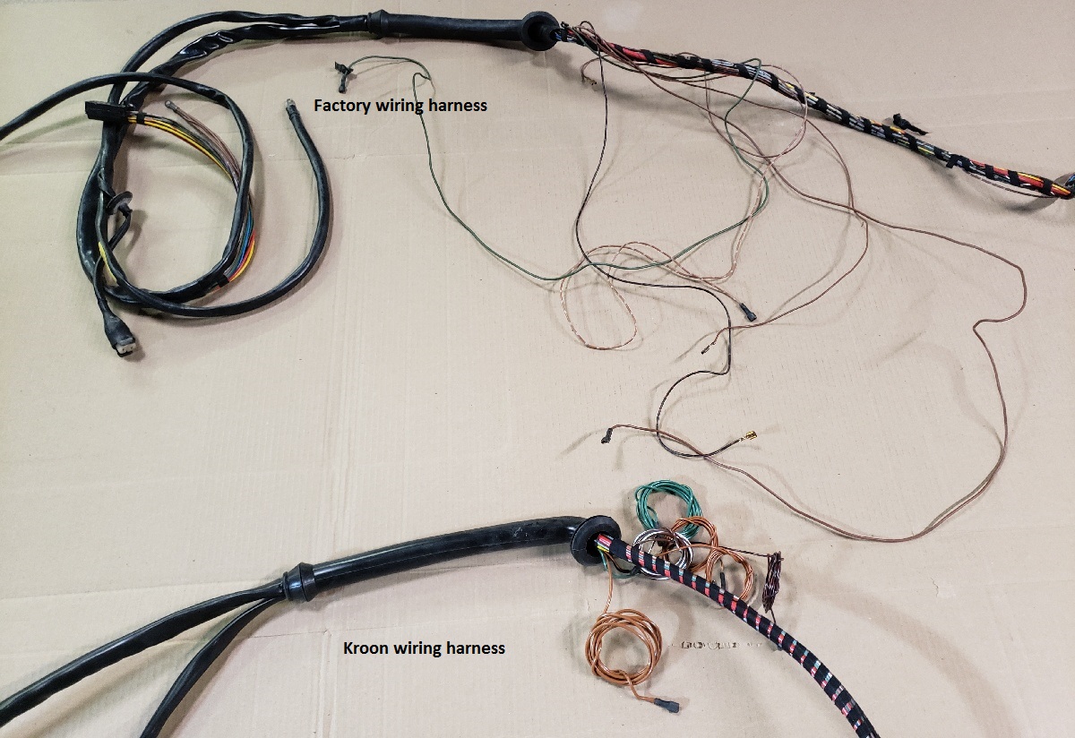 As Bill mentioned he has a Kroon wire harness. I place the Kroon harness next to my NOS factory harness and the only difference that really stood out was the wrap of the cloth tape on the Kroon was tighter.