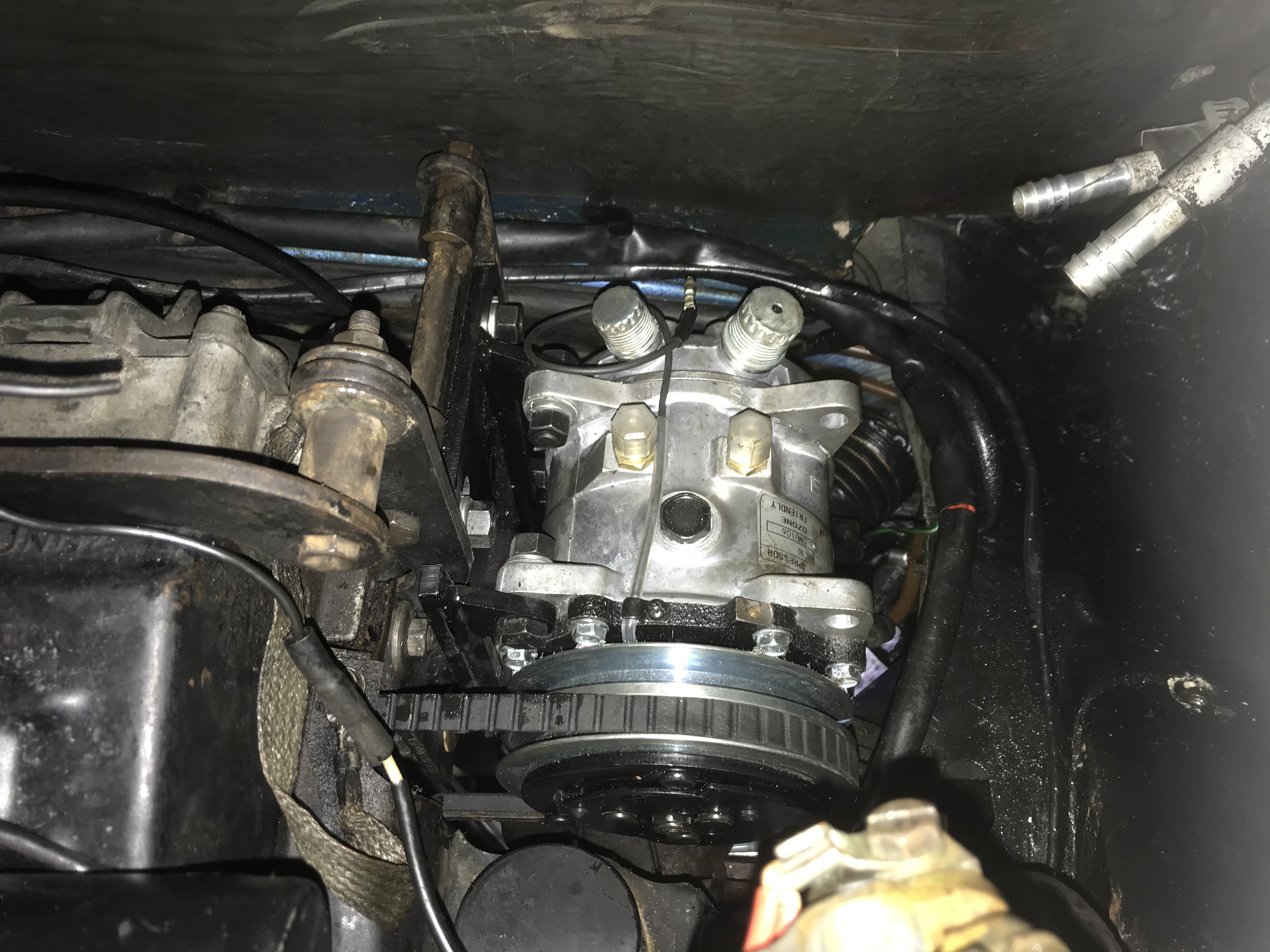 For anyone using this for reference as I did. My car has the VPC system. I got a Sanden 505 and York to Sanden bracket. I had to cut a slot in the bracket to make it work but it put the pulley almost in the exact same location. I got the stock size belt to fit but it is tight with none of the adjustment spacers installed. I would have purchased a one inch longer belt had I known. Now I just need to replace the hoses and charge the system.