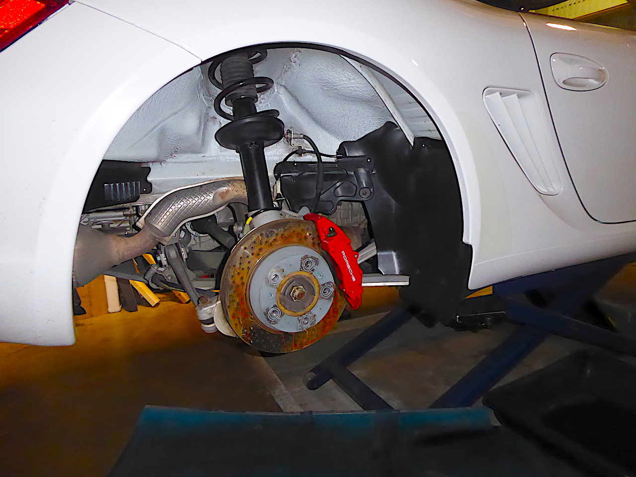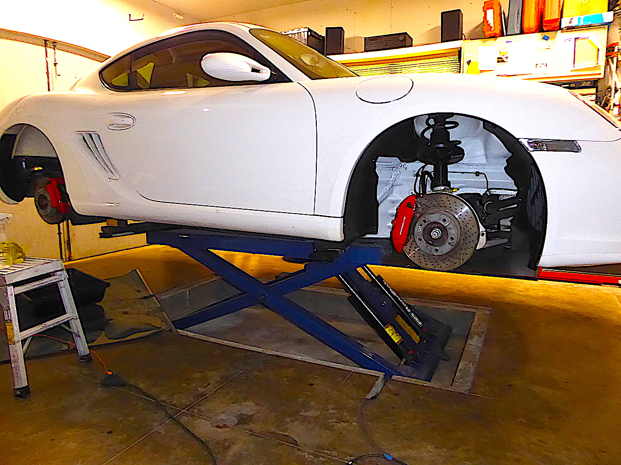 914 teener, good question and I do have a Cayman.....I have not done the water pump or belts yet. I believe with the extra work of putting the extension on and getting the car another 8 inch above the lift it would work. The few pictures I have of the Cayman were just to clean last year before the parade. Best, Mark