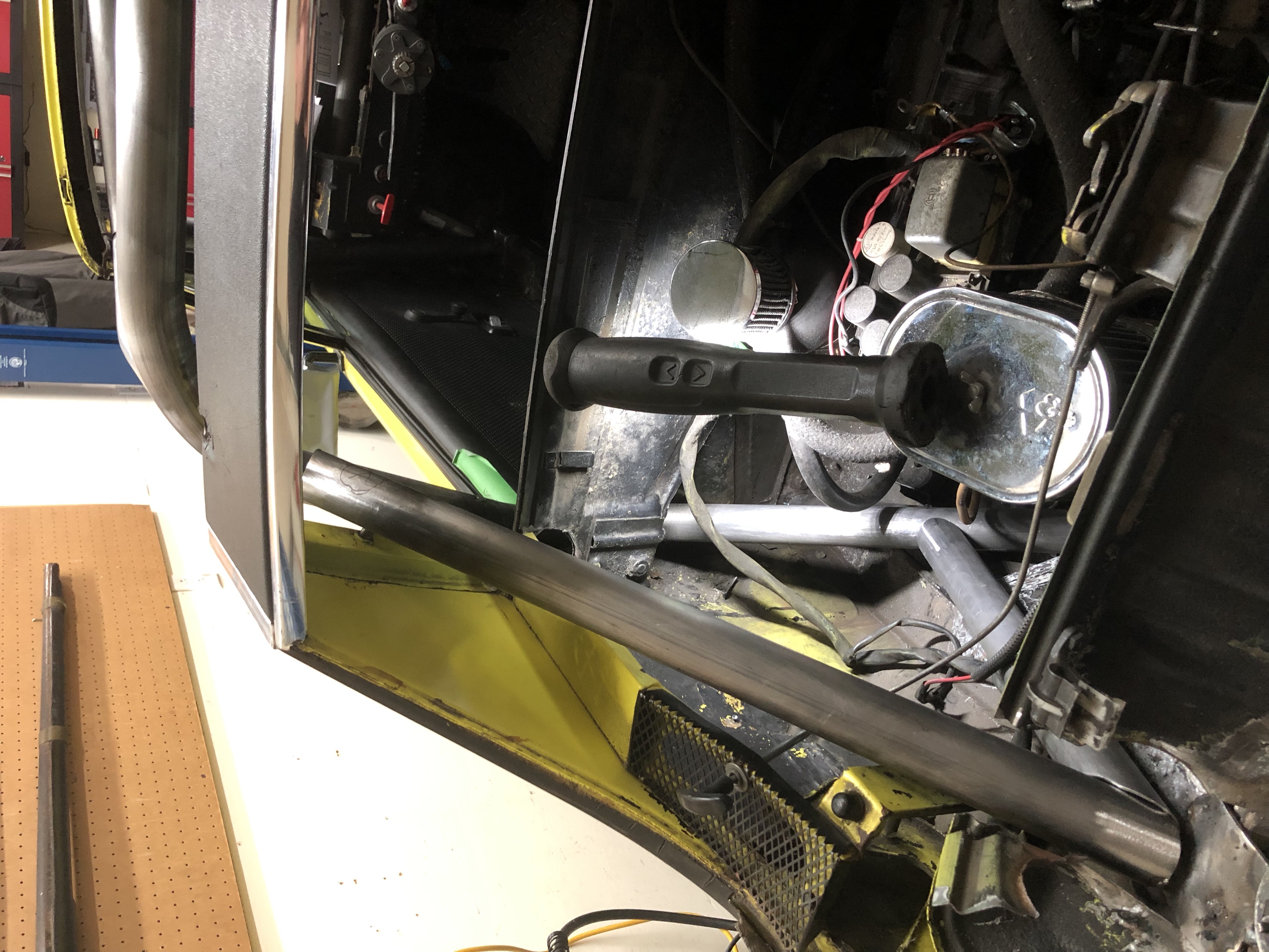 with all the work we're doing on Papa Smurf, one of big pieces of the development is tying the roll cage to the rear and front suspension points, plus doing tubing to strengthen other points around the car.