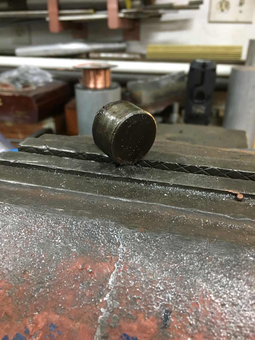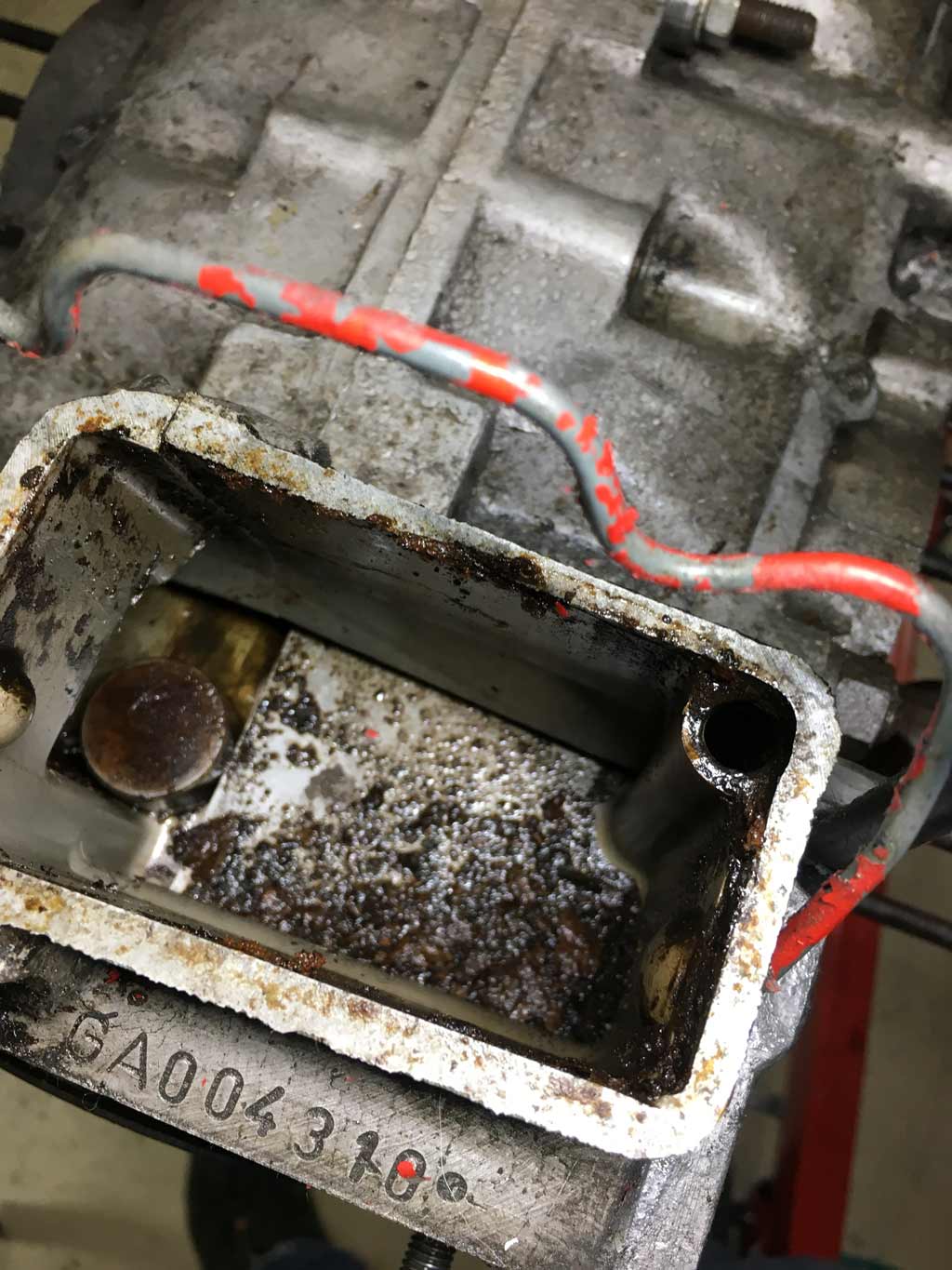 Doc said not to lift more than 5 lbs. I didn't - the hand winch did. (IMG:style_emoticons/default/biggrin.gif) Pretty uneventful weekend but I'm still sticking with the I hate previous owners rant. (IMG:style_emoticons/default/ar15.gif) When I pulled the oil breather off the top of the case I was horrified. Here's what I saw. Worse than the rust debris / garbage there is some sort of round metal object in here. Luckily it was too big to ever fall into the case. I have no idea what this is or where it came from. Any ideas? Here are two views of it |
