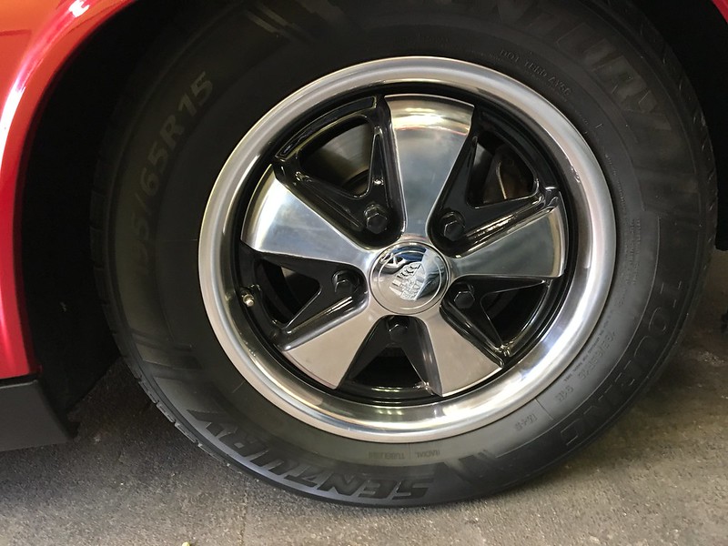very nicely done! that's how i'd hope my own long stalled conversion might look when done. can you talk about the wheels? not quite fuchs? They are JBWs. I got them from CIP (IMG:http://www.914world.com/bbs2/uploads_offsite/live.staticflickr.com-20876-1561064559.1.jpg) Beautiful conversion. Is that the Renegade Radiator kit? Whats your opinion of the fit/ finish? Love a Narrow body 914-8 haha Yes. It came with the car so I'm not sure it is what Renegade sells now. Mine is a Ron Davis. Very nice construction and fit. The cooling fans sound like a jet taking off when they come on. Probably no way around that to move the amount of air needed to move. The car runs on the T-Stat (160 degrees). The fans do not come on if you are moving down the road at 30 MPH +. They will come on in stop and go traffic. If it had not come with the car, I'm not sure I would have paid Renegade the $1,000 for it. I can take some close up pics and measurements if anyone is interested in going to another source. |