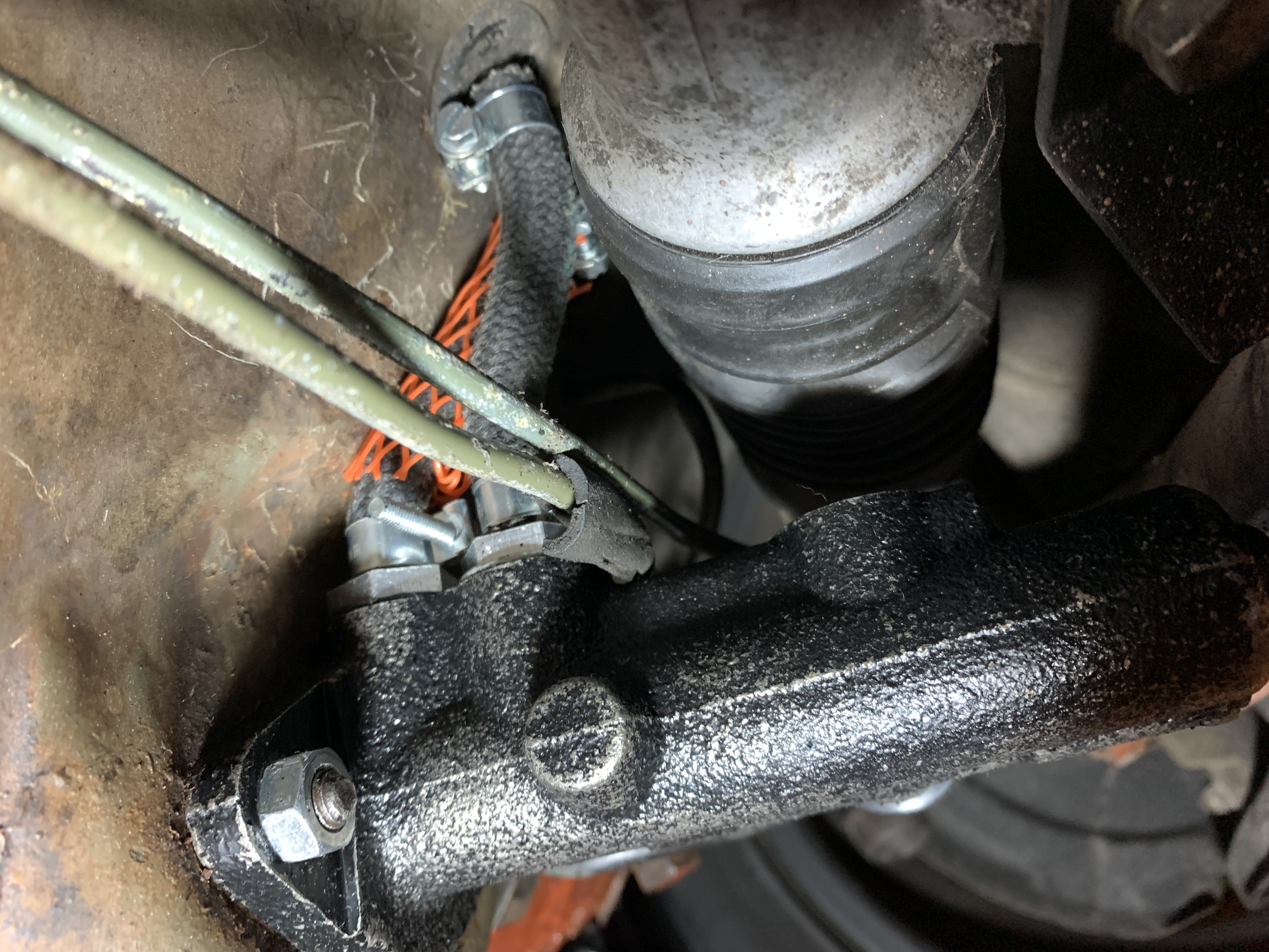 I was initially worried that I had a front crank seal when I thought it was from the back, and I am releaved that it’s not from the motor, I did all that last year and am proud to say it’s been a leak free motor since then, and I didn’t want to pull the motor or trans. BUT this is brake fluid, and I can’t really explain why this would suddenly spring A leak (IMG:style_emoticons/default/confused24.gif) . I replaced all brake lines and the 19mm master cylinder about 3-4 years ago, no leaks no issues since then. And I don’t have loss of pressure on brakes so I am assuming it’s the supply line so I guess I will be pulling the belly pan to investigate. Will post more info when I get a look just wonder why just now? I know the washer is there under the supply line connection, just weird this started now??? Phil |