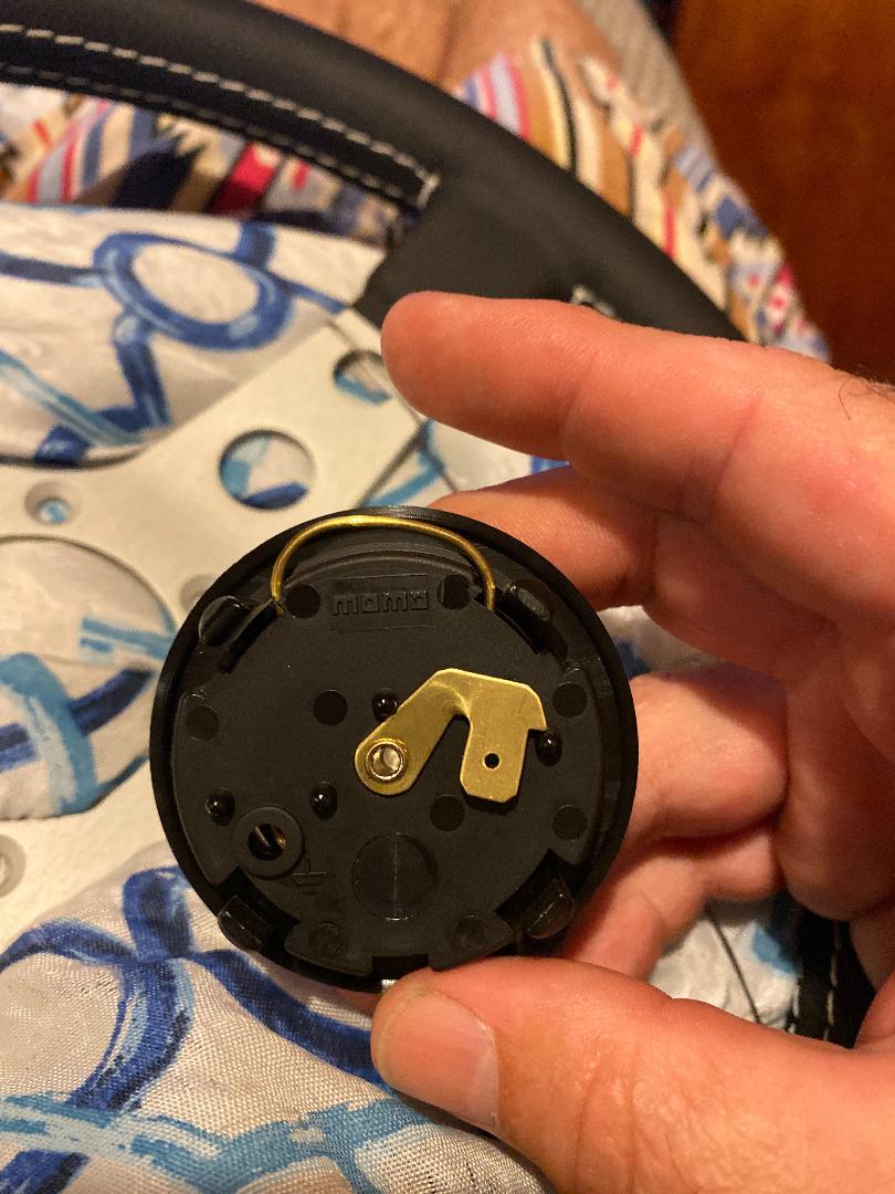 Has the 2 electrical connections and the spring that holds the button into the hub does not contact the inside of the hub. Apparently, this is the type of Momo horn button I need. The spring that does contact the inside of the hub completes the circuit when you push the button. Why is life so complicated at times? Makes it a challenge to get the button you really want (how it looks) vs getting a button that actually is functional...but maybe not your favorite as far as looks go. |