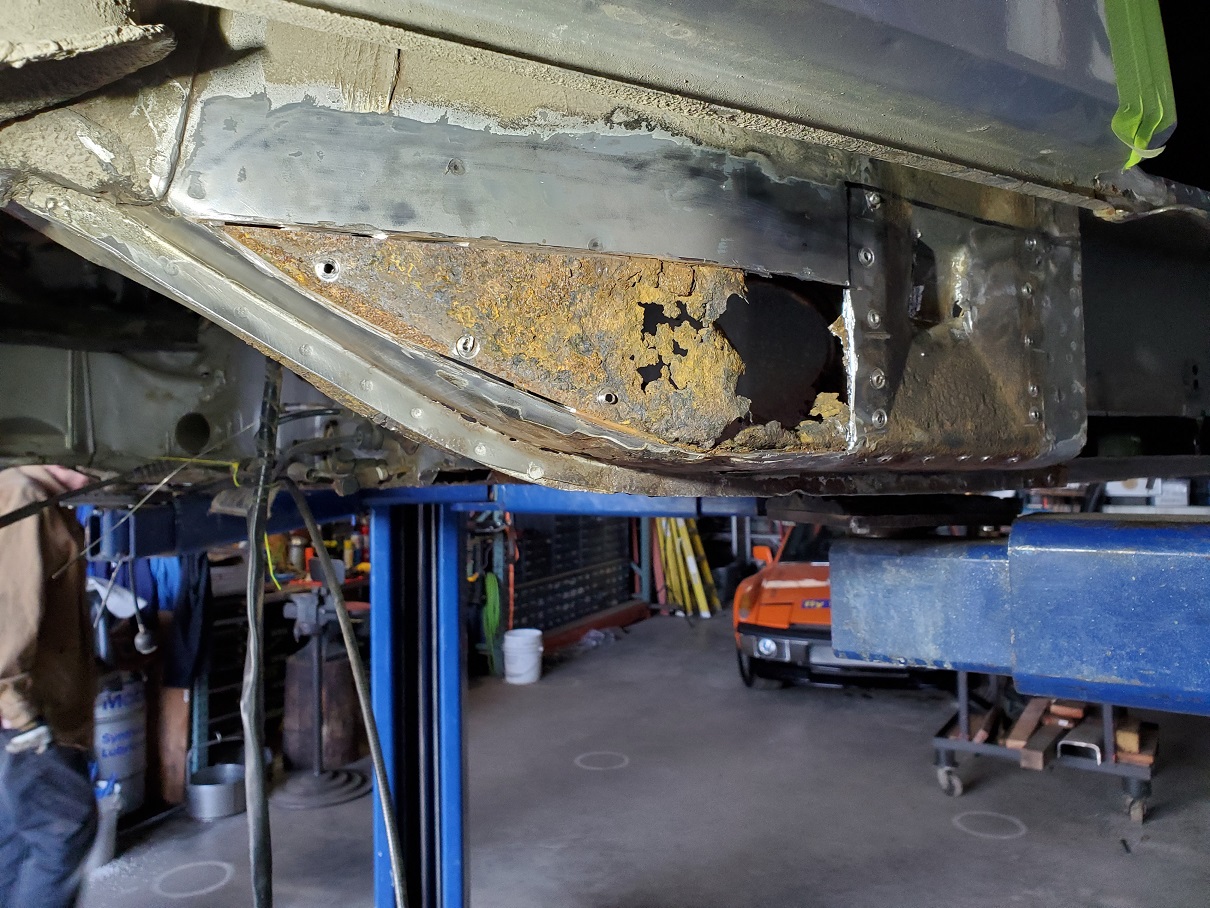 My son and I rebuilt the engine in 2012 and never started it. So Jack and I made a house call. Laying on the floor I saw the hole in the long. (IMG:style_emoticons/default/sad.gif) Basically I told him car shouldn't be driven unless the rust is repaired. Let him know where he fell in the line up of projects. Picked up the car around the first of September. Original scope of work : 1. Get engine up and running. 2. Get car shifting correctly. 3. Complete PMB brake restoration. 4. End of day, make car reliable After getting the car on the lift I gave him my best guess on the hours needed to complete the job. ![]() ![]() ![]() Drive train on the table ![]() |