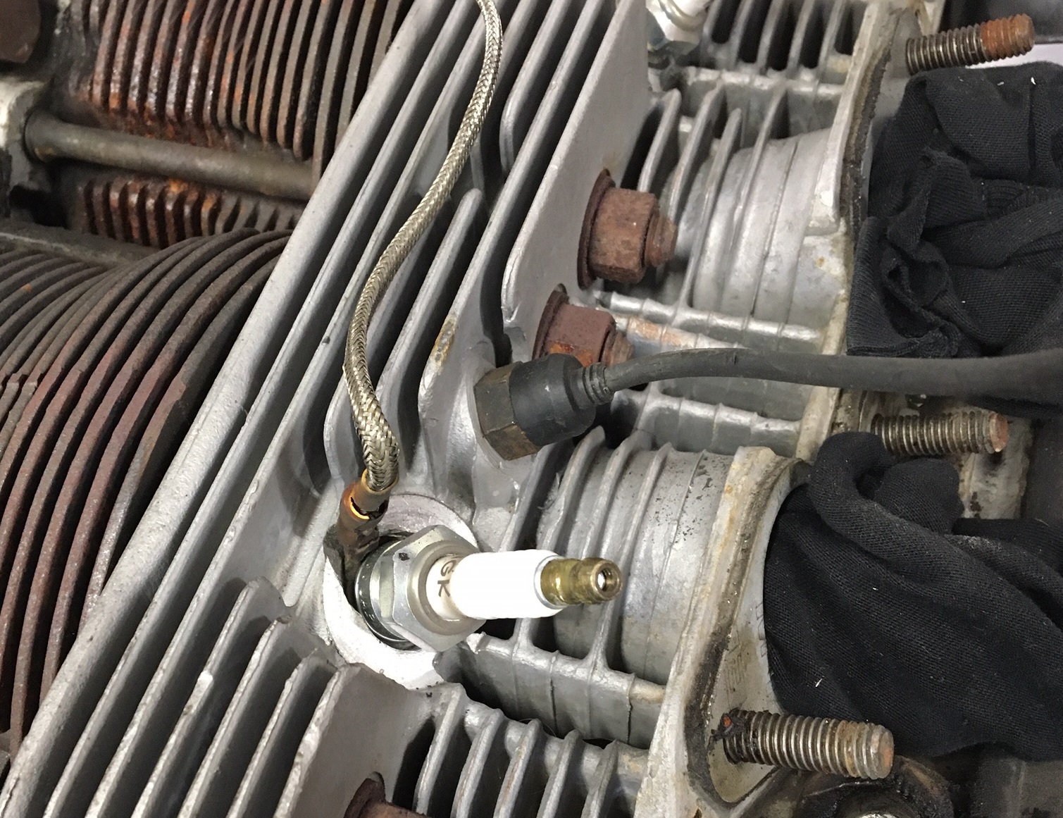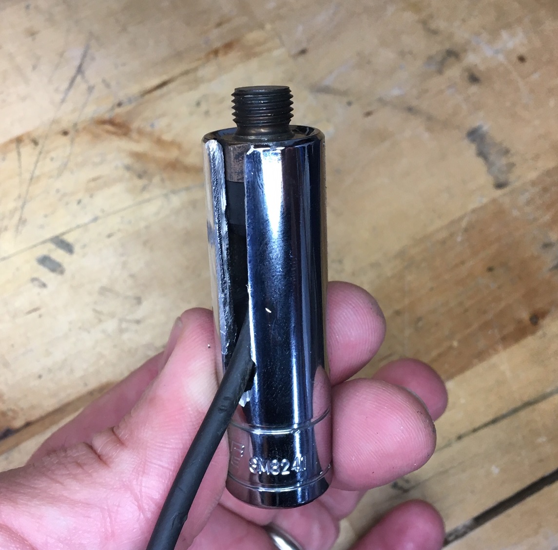 I got a 14mm long reach socket from my local FLAPS and made a slot with my thin disk grinder and Dremel tool. This will allow the wire to go through as shown in the second picture. Then I tried it on the cylinder head. You can also see my ring style type K thermocouple under the #3 spark plug for my cylinder head temperature gauge. Note that this CHT gauge is separate from the whole MS installation. I installed it upon my engine rebuild about 6 years ago for monitoring. ![]() |