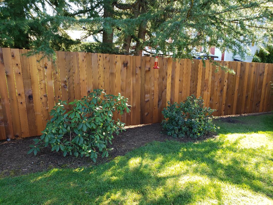That fence looks great. I built a fence with my next door neighbor, had all tools yet we still ended up with a fence that is uneven and not straight. I know, I know. I put out a nice string with my stakes for each post a straight as an arrow. Affect digging the holes and setting the posts in cement, I wasn't so straight anymore. (IMG:style_emoticons/default/hissyfit.gif) It's about as straight as a snake on speed I guess. But it looks fine from our side which is all that really matters...and it will last a long, long time. Thanks for all the atta-boys everyone. Will keep my eyes pealed Oscar. (IMG:style_emoticons/default/shades.gif) The local fence company quoted me an eye popping price. I did it for about 1/3 the price. Took me a total of one week for 120' of 6' cedar. The finishing touch was the stain/sealer that I applied in 2 coats. Supposedly will last looking like this for 5-6 years, then another coat will be needed. |