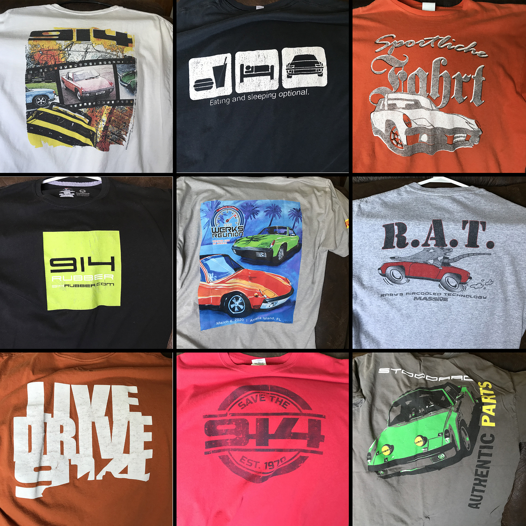 Since ya ain't doing nuthing how about showing off your 914 T-Shirts. I must have 10-15 of them by now and I'll bet I'm not the only one. I'd like to see what's out there. More especially any relics. Post up a pic of your favorite 914 shirt and a group shot of your T's if you have multiples. Admins: move to the Sandbox if desired. (IMG:style_emoticons/default/beerchug.gif)