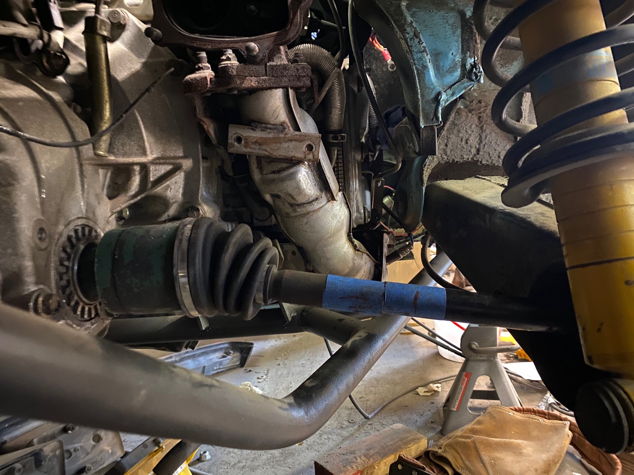 first axle test fit...need to take about 1.25" off still...gonna order some custom made ones from sway-a-way next week if anyone needs a set now is the time more people who buy them at once the cheaper the price gets....let me know guys and gals