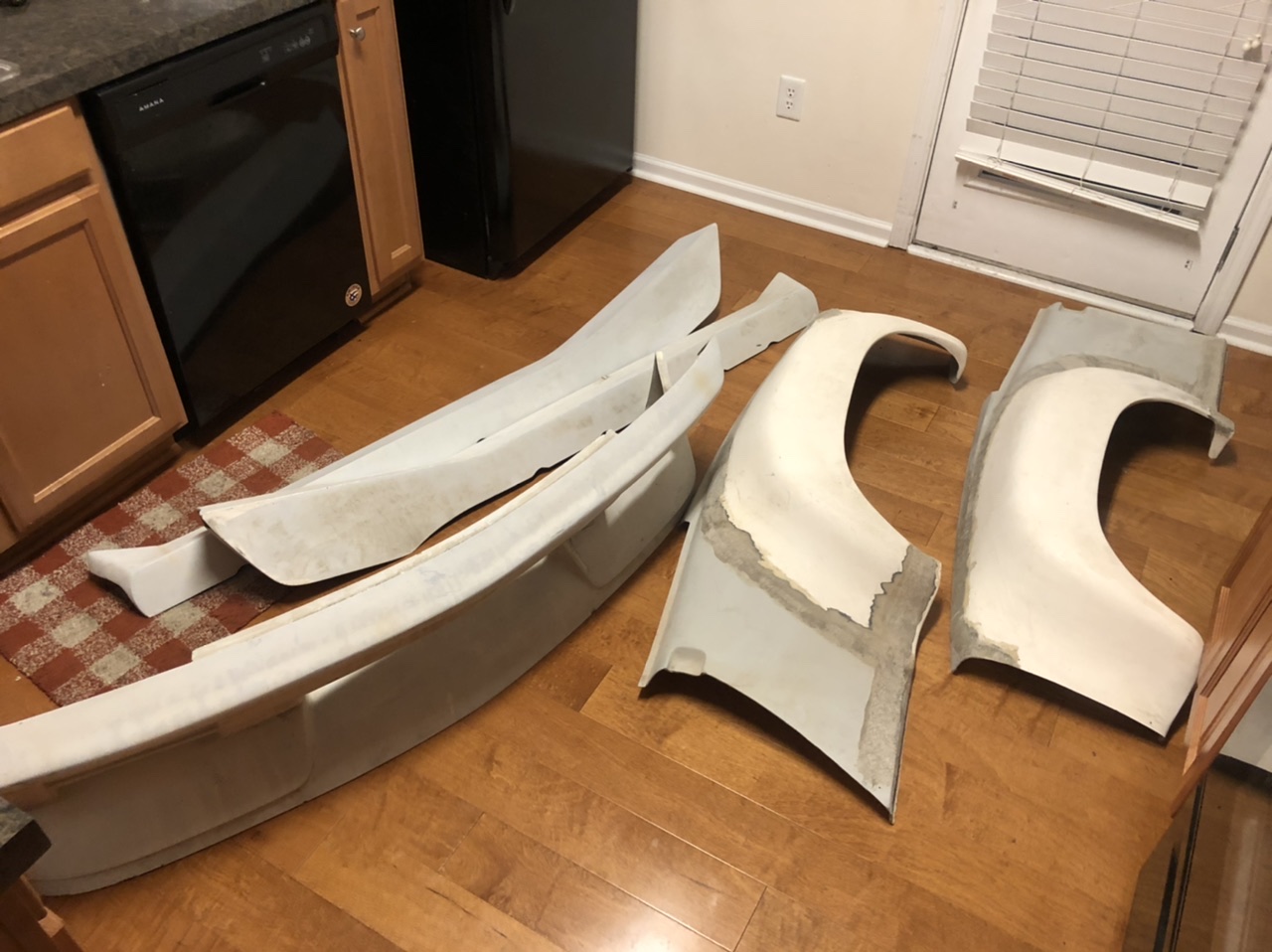 This was the biggest box ive ever received, i WAS gonna pick it up with my kei car, Honda beat but i listened to reason and took a volvo.... wise choice. Everything is a bit rough.. especially the fenders but i can make it work. The front bumper is decent enough to make me happy, and i knew the side skirts were wrong buying this stuff but oh well. I think they’re sheridan skirts if anyone needs them let me know, they are in good condition. Add it to the fiberglass stockpile in my attic. |
