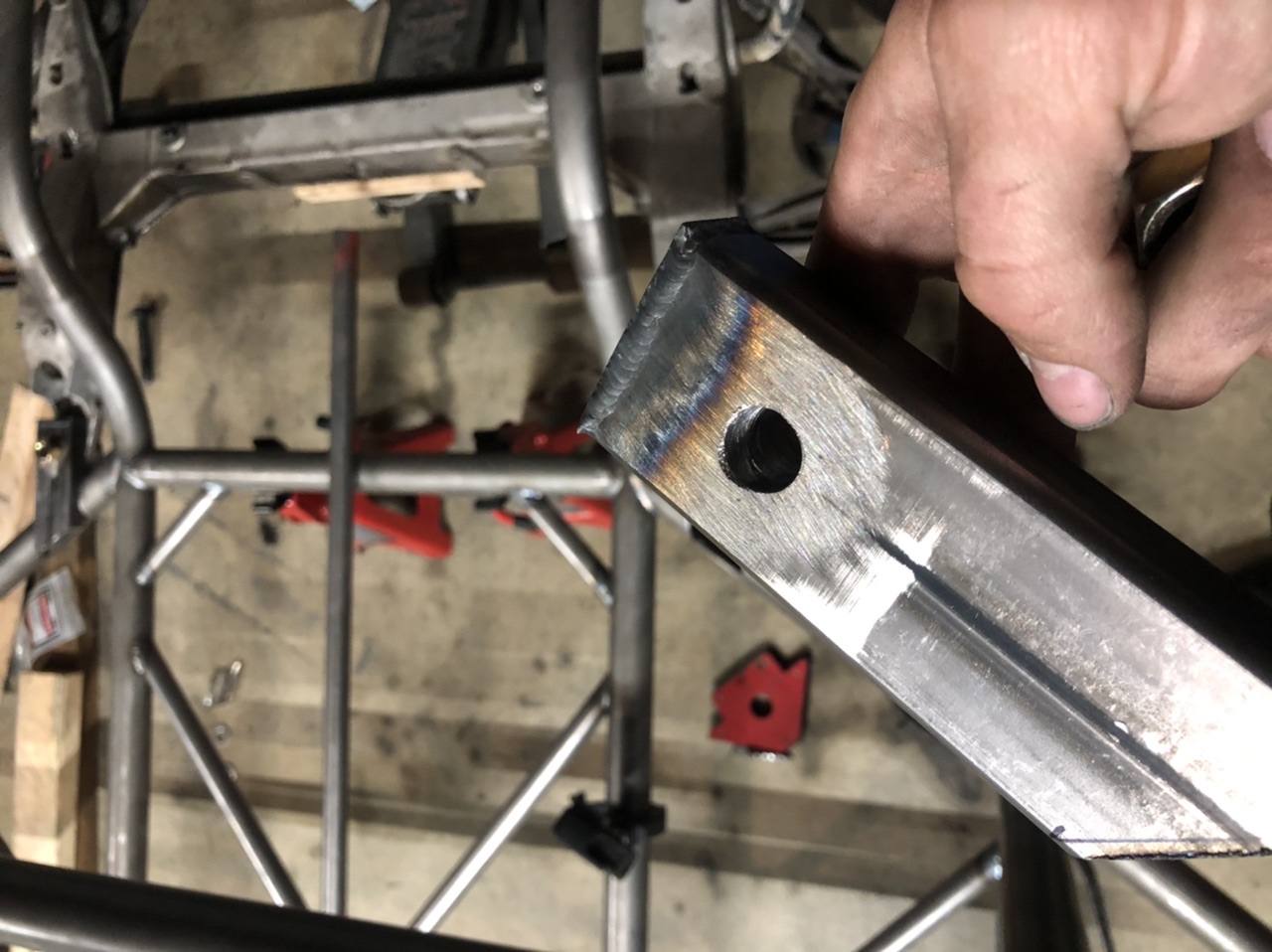 What's this holding? If it's seeing any real load and not heavily gusseted you're likely going to rip the tube in the HAZ outside of the weld. BTDT. Sometimes gussets don't even do too much. The welds look nice! (IMG:style_emoticons/default/first.gif) I know you're going along a pretty good clip but below are some pro-tips*: 1) Get a second regulator and purge the ID of the tube frame when you full weld it. Quality will be much higher. 2) Clean the inside of the tubing with a pipe cleaner. 3) Drywall mesh does a really good job of cleaning mill scale off without loading up. A quick pass of the wire brush in one direction afterwards takes care of the rest. 4) For any coped tubes going into a tube without air connection (like your gussets), drill a small hole so 1) gases expanding inside don't cause your pool to blow out at you near closing the weld and 2) you can purge. 5) If you use 4130 or any other high carbon steel, be sure to normalize the weld HAZ to keep it from cracking under use. You can do this with a torch (instructions in Engineer to Win IIRC). *Not a pro welder, but I've welded 5? (can't remember the full count now (IMG:style_emoticons/default/laugh.gif)) full tube framed formula cars and a bunch of semi-tubed cars. |