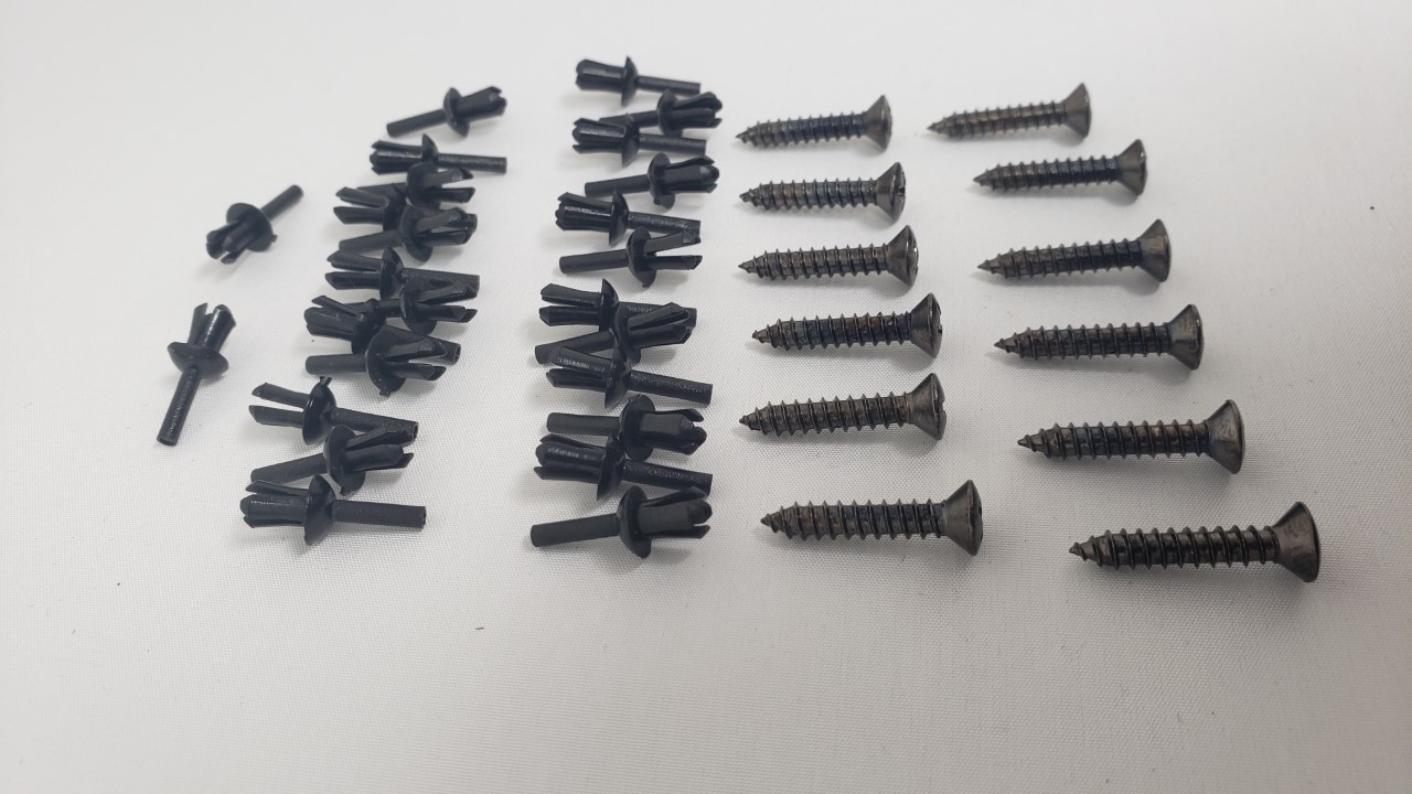 The "package" that includes the following 2x black anodized carpet strips 2x black anodized threshold scuff plates 26x clear expansion rivets (2 extras just in case you need a spare) 12x black nickel plated carpet strip screws Retail is $166.88 GB price is $88 for the kit in Black. Here are some pictures of the screws in the aluminum and what's included Attached thumbnail(s) |