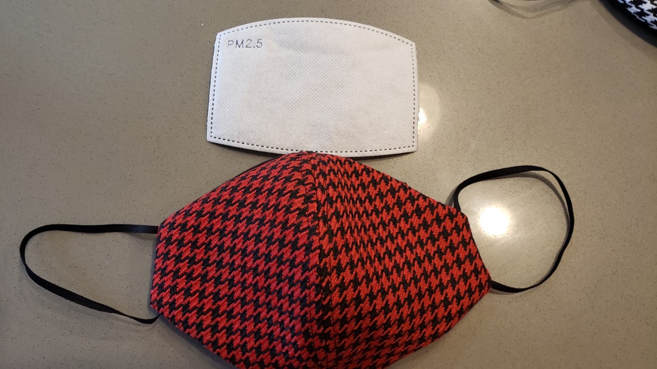 1- N95 cover 2 -PM2.5 cover They are sewn slightly differently. The N95 has more of a point to it. These are covers for the filters. I can get the N95 masks as shown at $5 each and the PM2.5 @$1 each They are nit included unless you want them. You may be able to buy in bulk at a better price, I'm adding nothing to the cost. The coverings are $10 each and will be made to order. Your options are the Hounds tooth in Black and white Black and blue Black and yellow Black and red May do some black and green if there is demand Also I have the plaids as shown. May be limited on some quantities of different colors 1st version is the PM2.5 shown in red houndstooth Just let me know which version you want and the color. Attached thumbnail(s) Attached image(s)