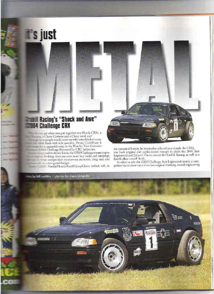 Honda CRX + Chev V-8 Grassroots motorsports this month