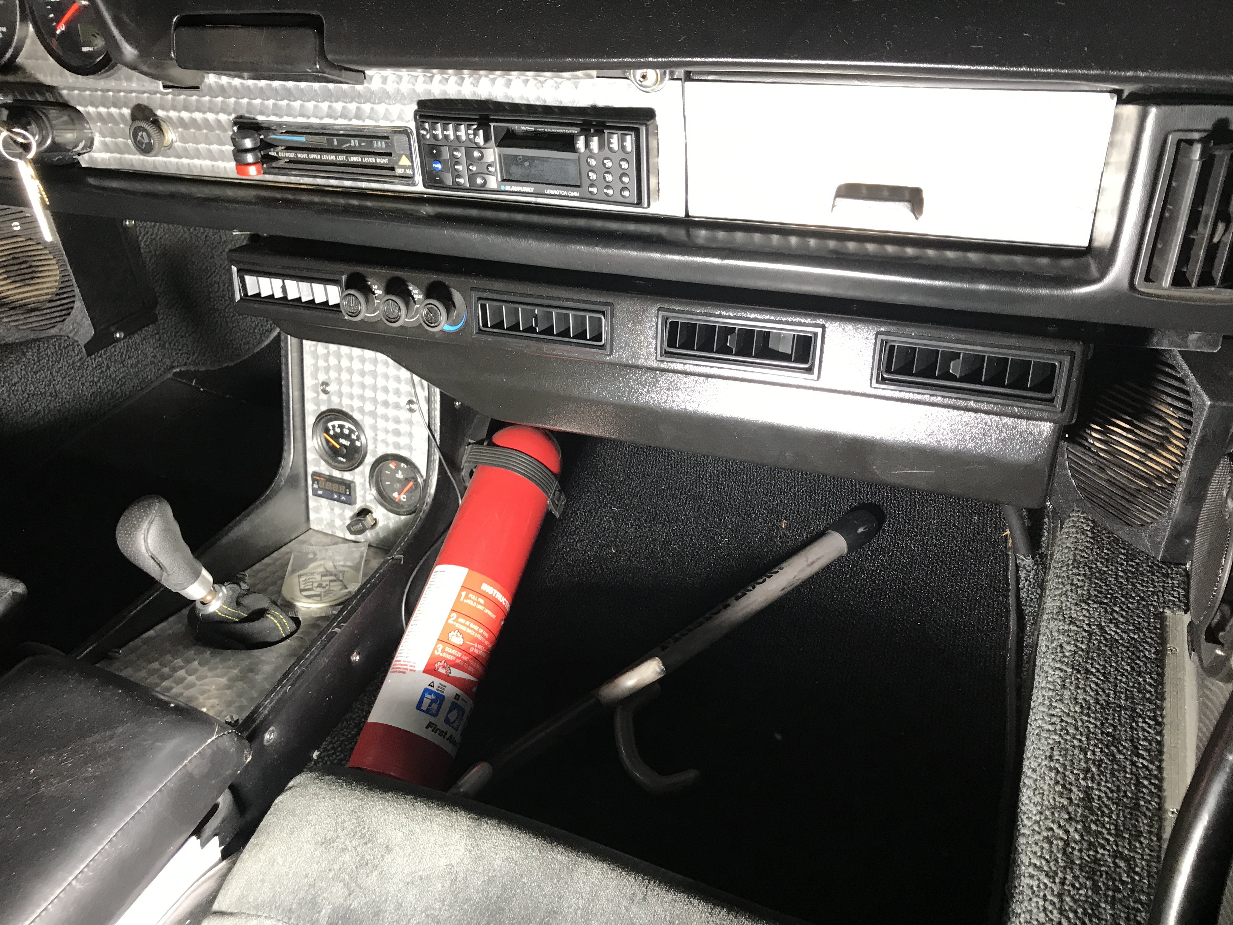 (IMG:style_emoticons/default/agree.gif) used with success here in a Subaru swap @76-914 Kent please fill in the details as you lived with a similar unit for years now. @914forme Sure Stephan. BTW Steve has seen my setup. I went with the Vintage air unit because of the depth of that unit. Everything I found was 12" depth except for this one particular unit they sell that has a 10" depth. Even then it is a close fit. The closer is that you don't need to cut or drill new holes in your lower dash/knee pad. On the right side I bent one of there supplied straight hangers 90 degres. On the left, IIRC I bent another supplied hanger but more of an "L" shape. You use the OEM screws if long enough or a 6mm x 25mm x 1.25. Regardless, it fits the 914 like a glove and does not protrude past the knee pad. I can list the part # but AFAIK it is the only unit the sell with a 10" depth. A little under $500 whenI bought it. |